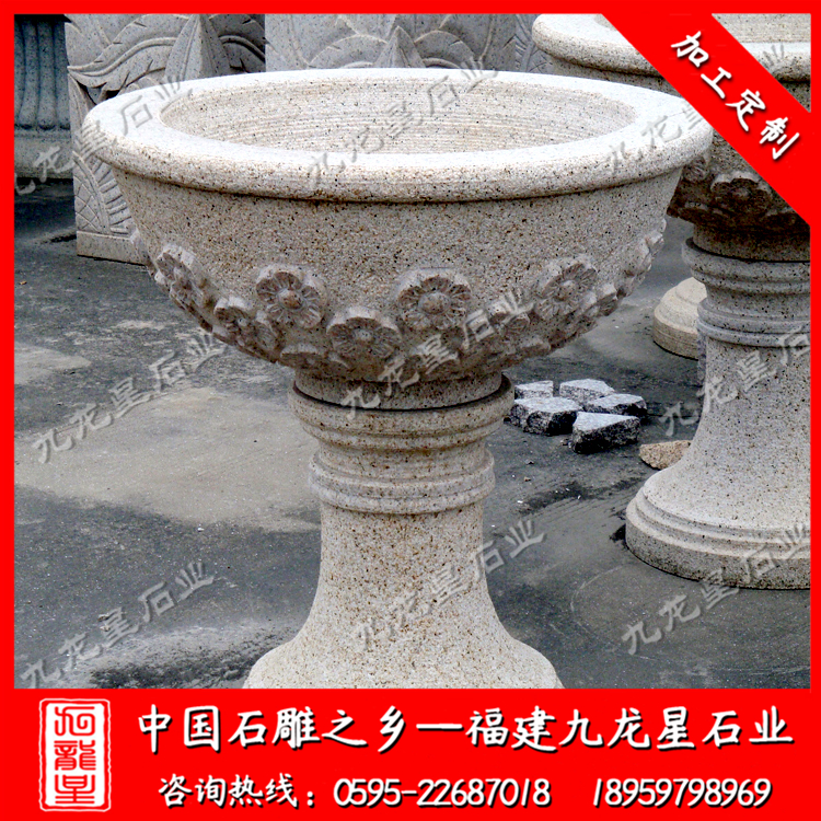 景觀石材花缽的款式造型豐富,造型奇特,不僅僅是一個(gè)石材花缽,還兼具了觀賞藝術(shù)的功能。每一款石雕花缽都有著很大的用途。九龍星石業(yè)——專業(yè)的花缽生產(chǎn)廠家,位于福建泉州臺(tái)商投資區(qū),隨時(shí)歡迎廣大客戶來(lái)我司考察!