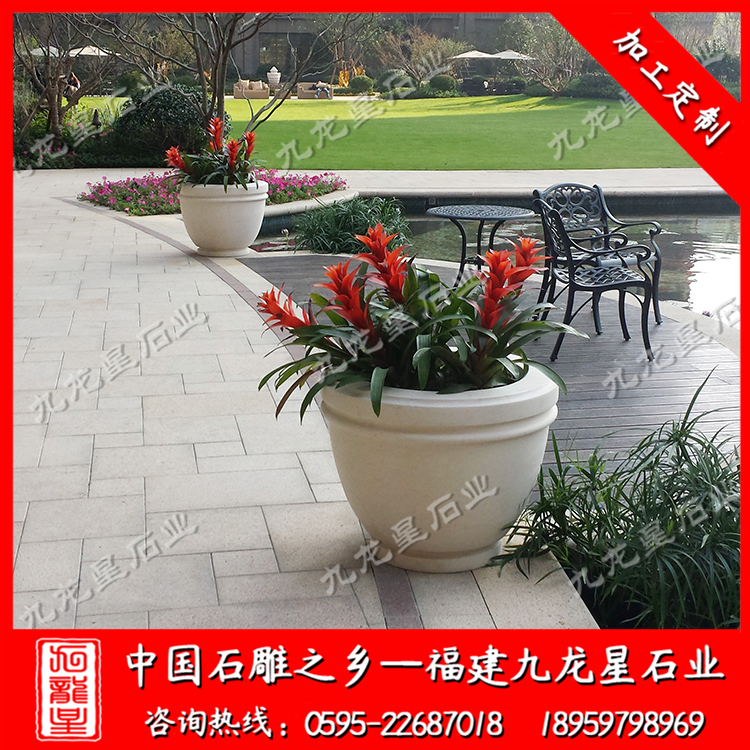石花盆廠家定做花盆的小區各式各樣,那些高檔一點的小區定做的花缽則略有不同。惠安是以花崗巖雕刻為主的,但是其他大理石雕刻也不少,尤其是花缽這種石材雕刻品。高檔小區的花缽一般會采用米黃系列大理石制作花缽,比如埃及米黃、西班牙米黃等。為什么要用米黃而不用黃銹石呢?雖然二者都是黃色,與泥土顏色接近,但是黃銹石顆粒粗大,不夠細膩,如果放在定位高端的小區,會瞬間將整體檔次拉低,尤其是放在那些道路兩側顯眼位置的花缽一定要盡可能采用米黃大理石制作。