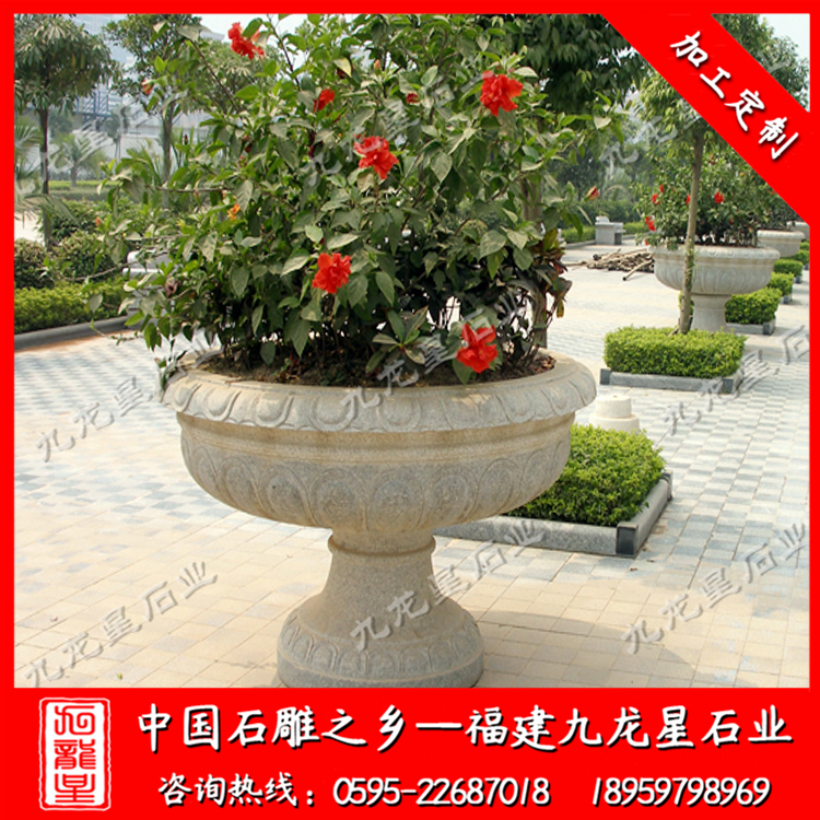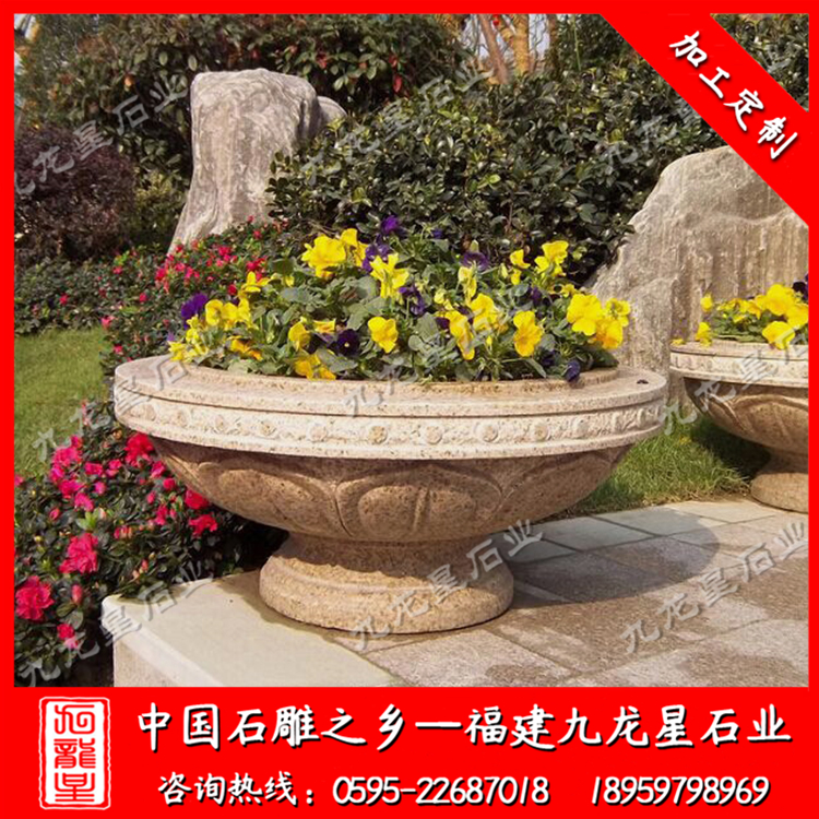 石雕花缽(廠家定做石材花盆 歐式石雕花缽批發)——九龍星石業