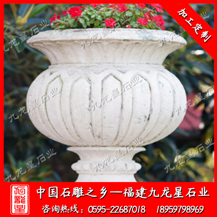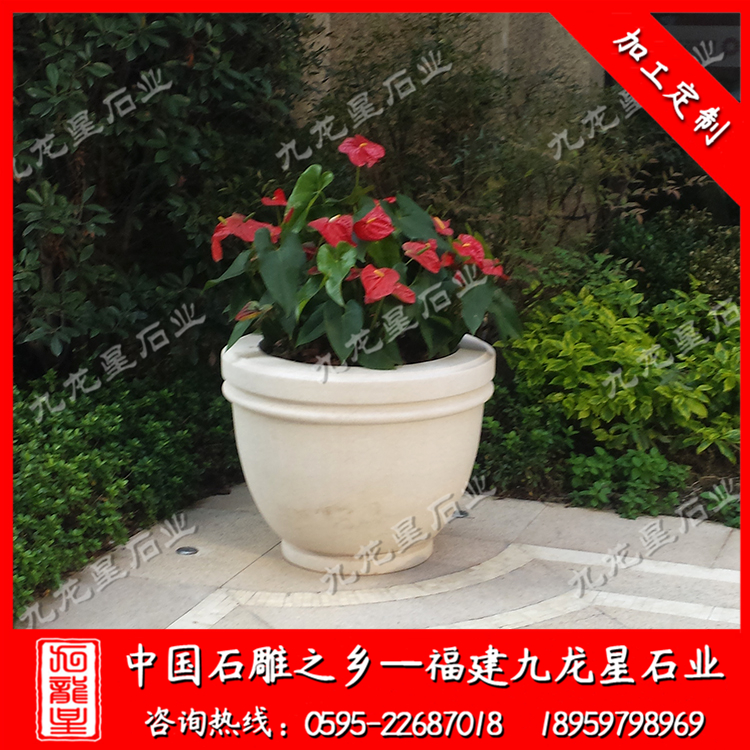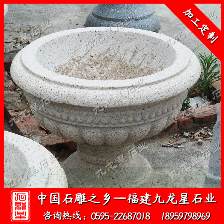 石雕花缽(惠安廠家供應(yīng)大理石花盆 景觀石雕花缽)——九龍星石業(yè)