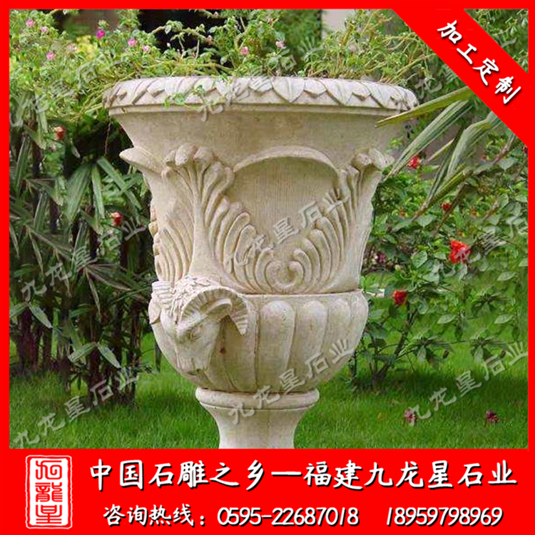 石雕花缽(小區別墅石雕花缽 歐式花缽裝飾擺件)——九龍星石業