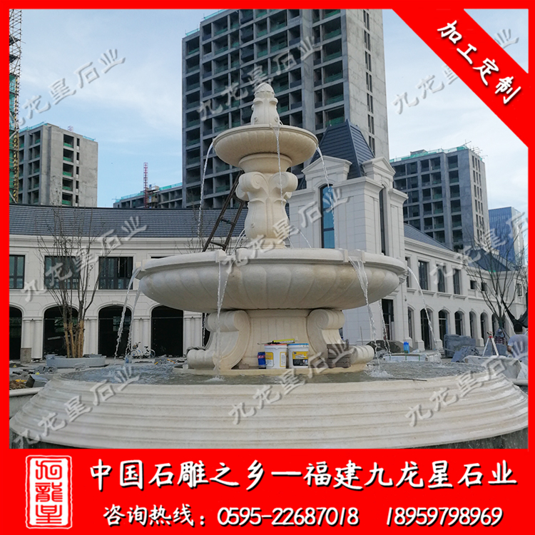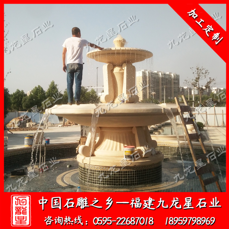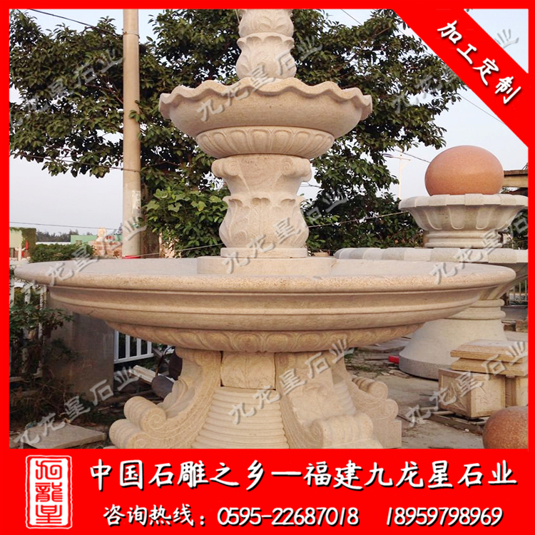 石雕水缽(雙層水景石雕噴泉 埃及米黃石雕水缽)——九龍星石業