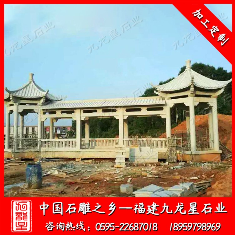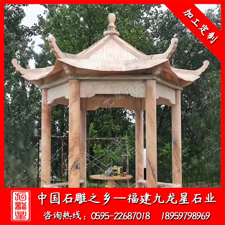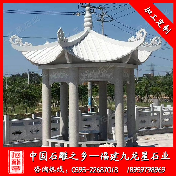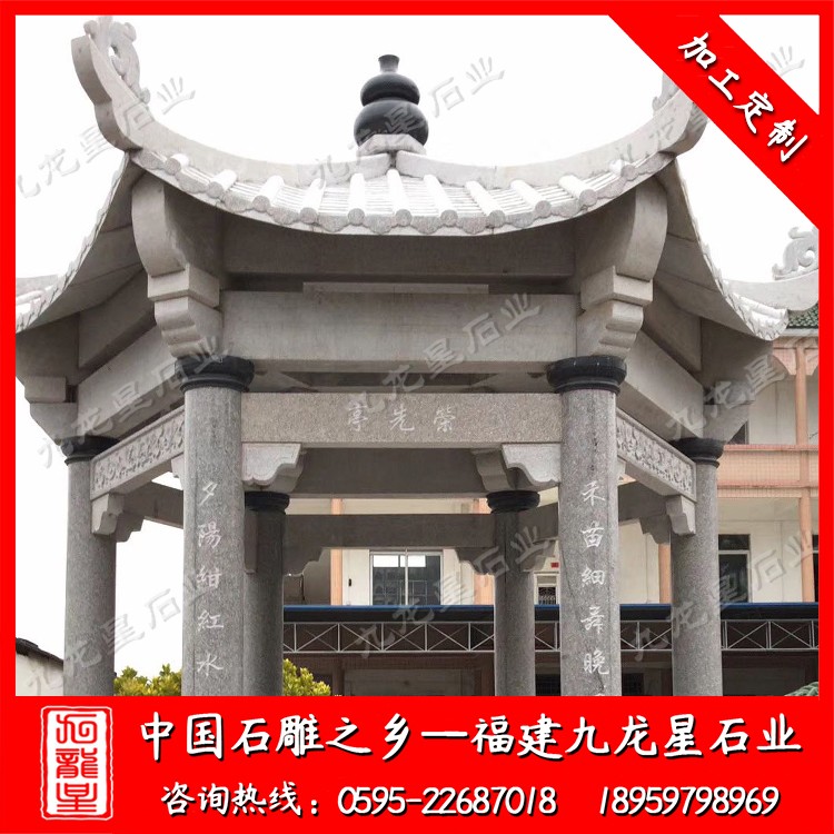 石雕涼亭(園林景觀石雕涼亭 仿古六角石亭子廠家)——九龍星石業