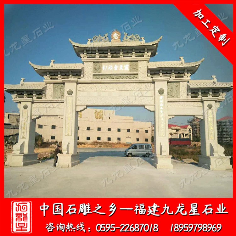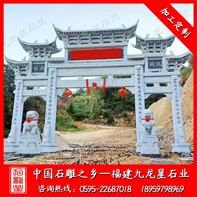 往常說起石雕牌坊,大家都不會生疏,從周朝的欞星門演化而來,石牌坊的雕琢設計都更為精(jing)致,起到了很好的裝飾性和標志性作用。石牌坊的應用比擬多,比方在祠堂、景區、村莊等中都能夠經常看到,不只僅是建筑搭配,也是傳承文化的寓意。石雕牌坊在我們各區域運用比擬多,往常不少建立都會采用石牌坊搭配,對整個建筑的氣氛調和好,而且寓意也都很多。比方祠堂石牌坊承載了一個家族的血脈親情,也是對祖輩的緬懷,心系血脈親情,這是維系我們血脈和感恩祖輩所在。