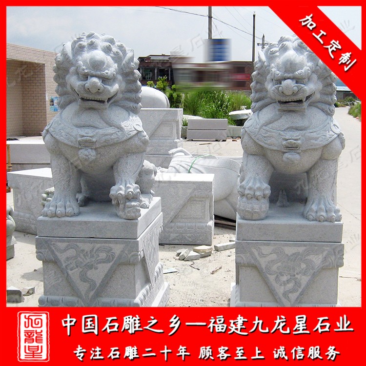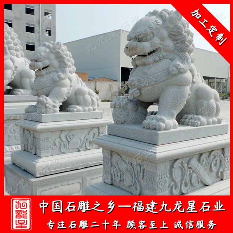 石獅子在我國漢族民間又稱石獅子,是漢族傳統文化中常見的物品,也是中國傳統建筑中常適用的一種裝飾物。以大理石、花崗巖、、青石、漢白玉等為材料,以圓雕為主要造型手法。