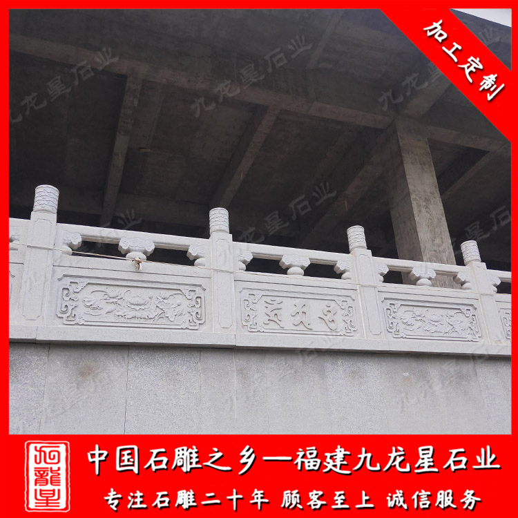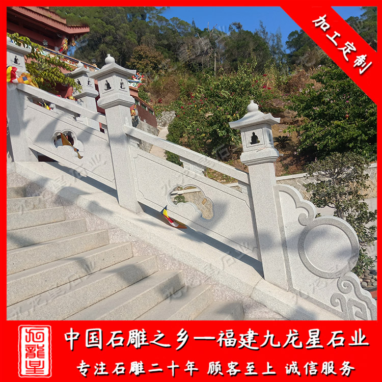 九龍星石業(yè)位于“中國(guó)石雕之鄉(xiāng)”福建惠安,是一家提供寺廟石欄桿從設(shè)計(jì)開(kāi)發(fā)到生產(chǎn)加工安裝全方位服務(wù)的雕刻企業(yè)。寺廟石欄桿在當(dāng)今社會(huì)的運(yùn)用十分廣泛,步入寺廟隨處可見(jiàn),寺廟石欄桿從雕刻看,寺廟石欄桿的可雕刻八寶佛、蓮花、龍鳳、竹子等等。從寺廟石欄桿的材質(zhì)上看,可以選用花崗巖、青石、大理石等性價(jià)比高,相對(duì)來(lái)說(shuō)價(jià)格便宜。