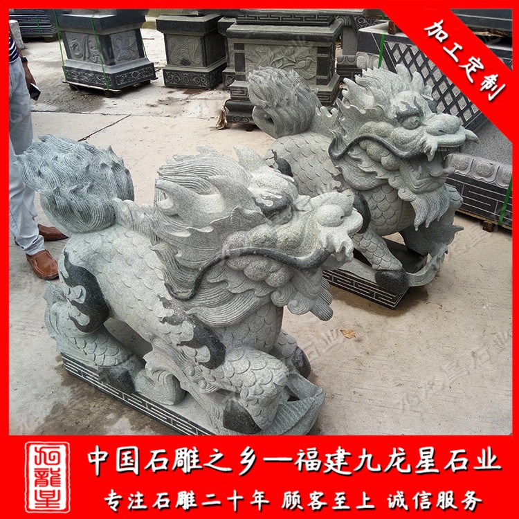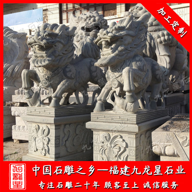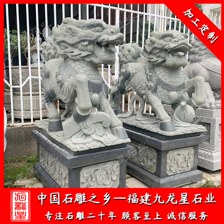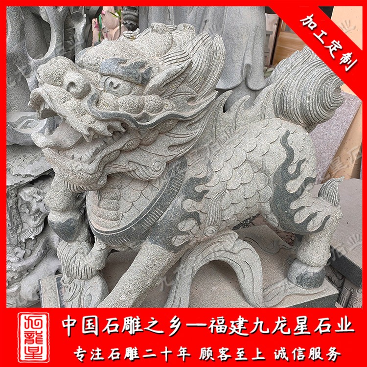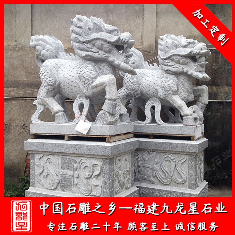 從網(wǎng)絡(luò)上或是從實(shí)際的生活中,我們都不難看到門口石雕麒麟的圖片,現(xiàn)國(guó)內(nèi)的石麒麟生產(chǎn)廠家也是越來(lái)越多。有浙江石雕麒麟廠家、江西石雕麒麟廠家、福建泉州石雕麒麟廠家。福建九龍星石業(yè)發(fā)展有限公司位于石雕之鄉(xiāng)--福建惠安,是福建泉州石雕麒麟廠家,從事門口石雕麒麟制作20多年,門口石雕麒麟圖片款式多樣、門口石雕麒麟規(guī)格大小可以定zhi,門口石雕麒麟價(jià)格合理,望廣大新老客戶前來(lái)參觀考察和選購(gòu)。