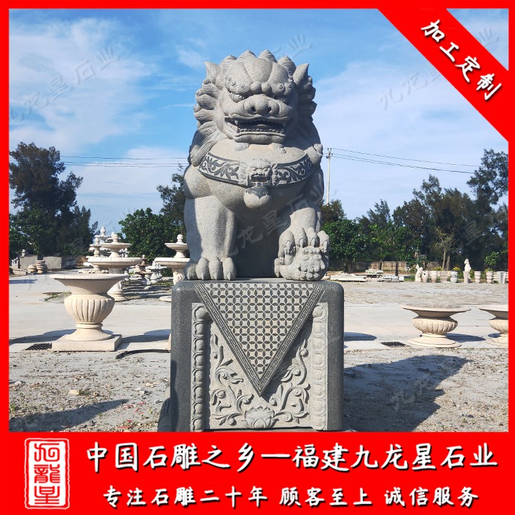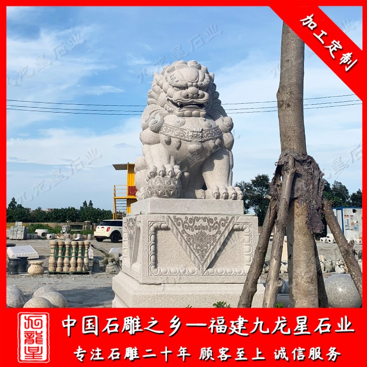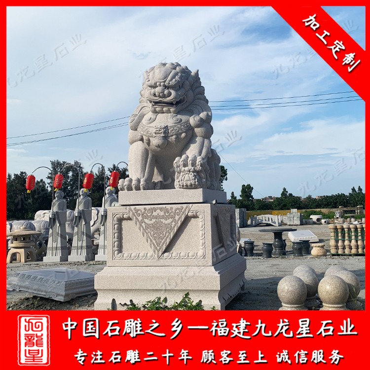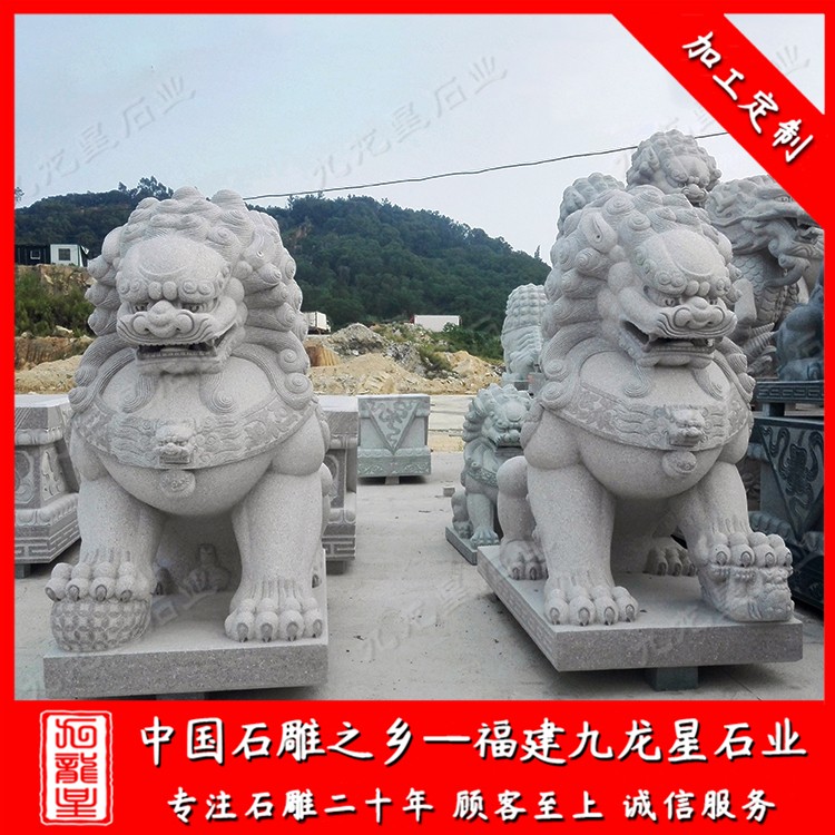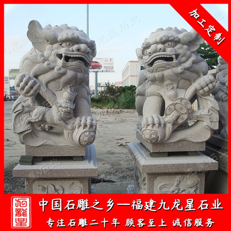 福建九龍星石業發展有限公司位于石雕之鄉--福建惠安,是惠安石獅子生產廠家,從事家門口石獅子、工廠門口石獅子、祠堂門口獅子、寺廟門口石獅子加工制作20多年,石獅子圖片款式多樣;石獅子價格合理,望廣大新老客戶前來參觀考察和選購。