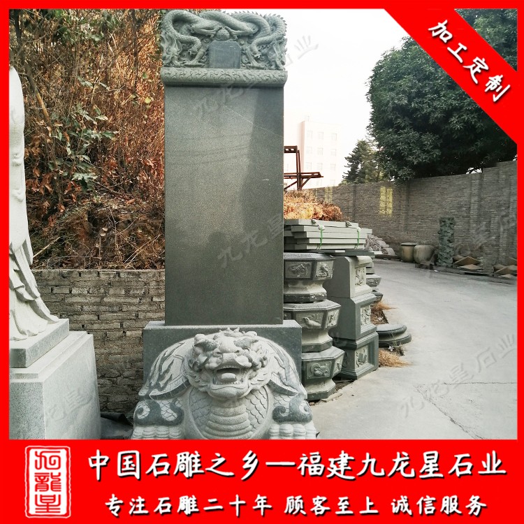 福建九龍星石業發展有限公司位于石雕之鄉--福建惠安,是石雕龜馱碑廠家,從事寺廟石雕龜馱碑、景點石雕龜馱碑、家族祠堂石雕龜馱碑,墓地石雕龜馱碑雕刻制作20多年,石雕龜馱碑圖片多,石雕龜馱碑制作經驗豐富,雕刻工藝jing湛,石雕龜馱碑材質可以為花崗巖、青石、漢白玉等等,望廣大新老客戶前來參觀考察和選購。