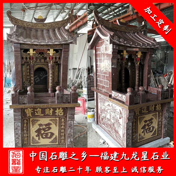 土地廟石雕廠也隨之增多,土地廟石雕廠很多聚集在福建,九龍星石業是福建土地廟石雕廠家,從事石雕土地廟加工雕刻制作20多年,石雕土地廟圖片款式多樣,制作經驗豐富,雕刻工藝jing湛,石雕土地廟材質可以為花崗巖、青石、漢白玉等等,望廣大新老客戶前來參觀考察和選購。