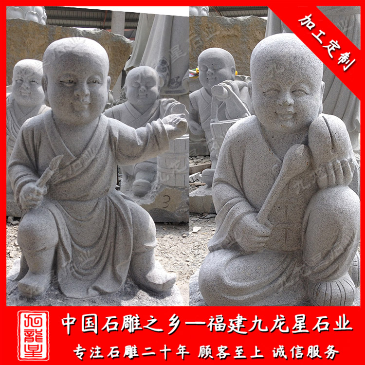 福建九龍星石業(yè)發(fā)展有限公司位于石雕之鄉(xiāng)--福建惠安,是惠安石雕小沙彌、石雕小和尚廠家,從事石雕小沙彌、石雕小和尚加工雕刻制作20多年,石雕小沙彌、石雕小和尚圖片款式多樣,有景區(qū)石雕小沙彌、寺院石雕小沙彌等等。制作經(jīng)驗豐富,雕刻工藝jing湛,石雕小沙彌、石雕小和尚材質(zhì)可以為花崗巖、青石、漢白玉等等,望廣大新老客戶前來參觀考察和選購。