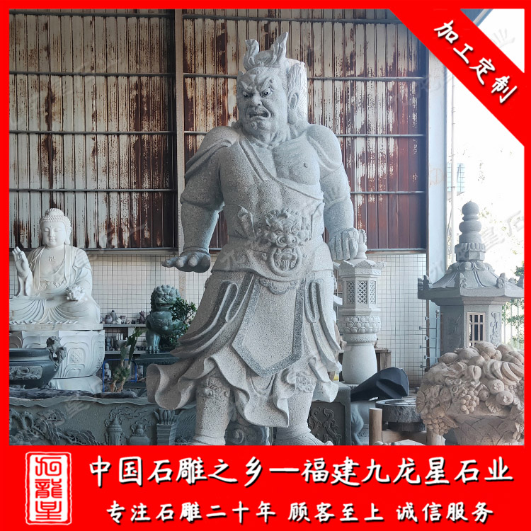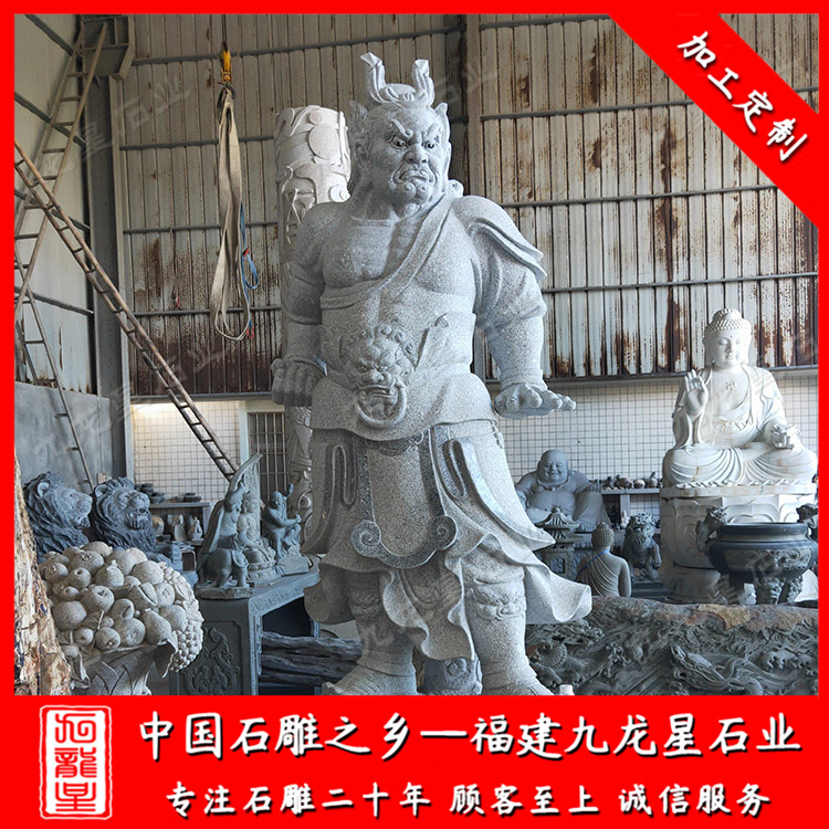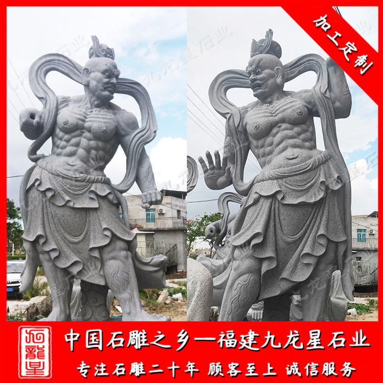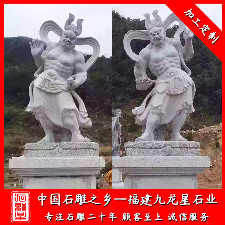 石雕哼哈二將(佛教石雕哼哈二將廠家價格 哼哈二將石像圖 定制寺廟佛像)——九龍星石業