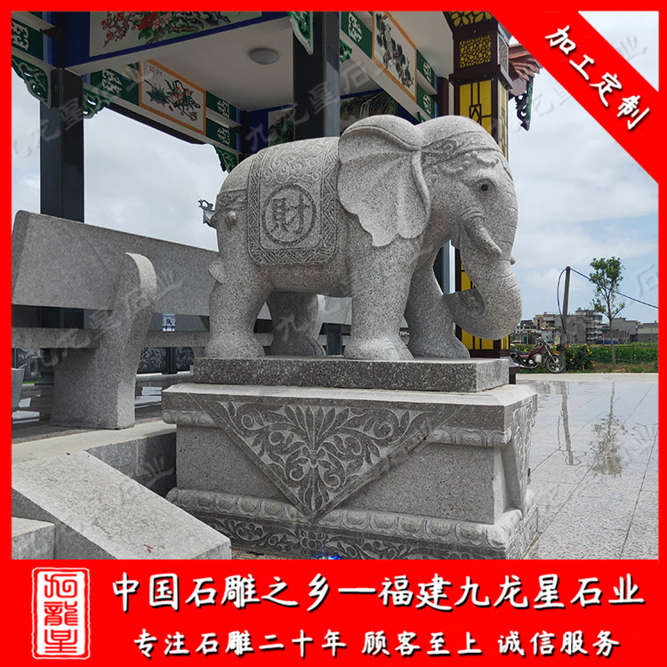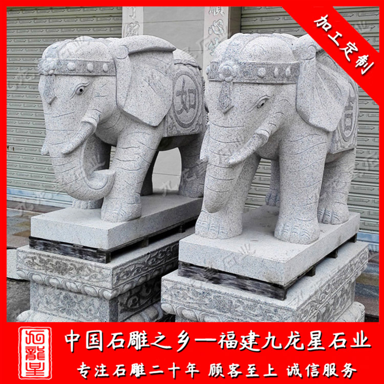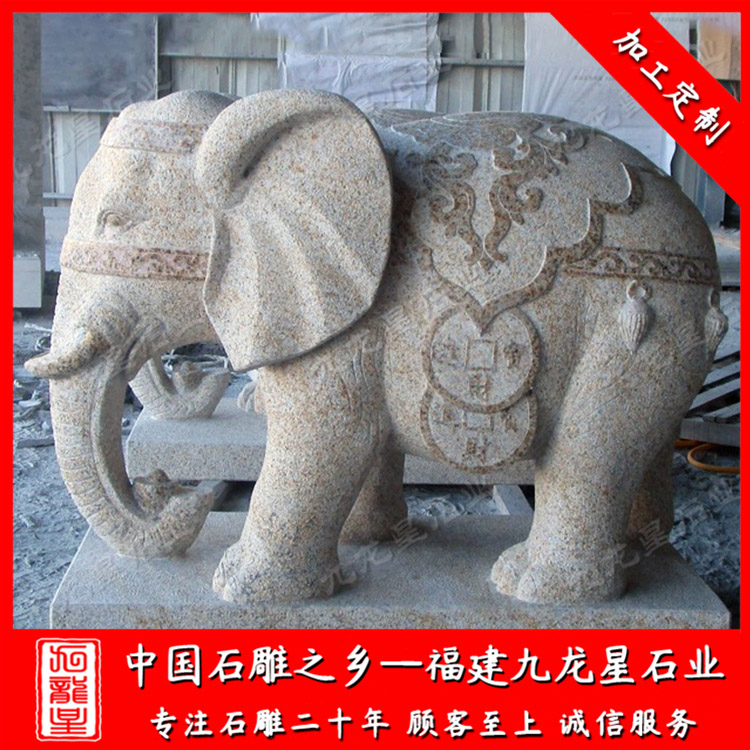 石雕大象(石雕大象擺放門口 酒店門口石雕大象價(jià)格 動(dòng)物神獸擺件)——九龍星石業(yè)