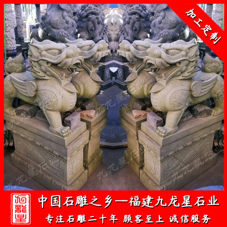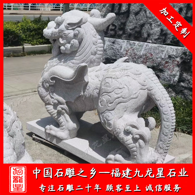 石雕貔貅(湖北石雕貔貅廠家 一對石雕貔貅擺放 貔貅神獸)——九龍星石業(yè)