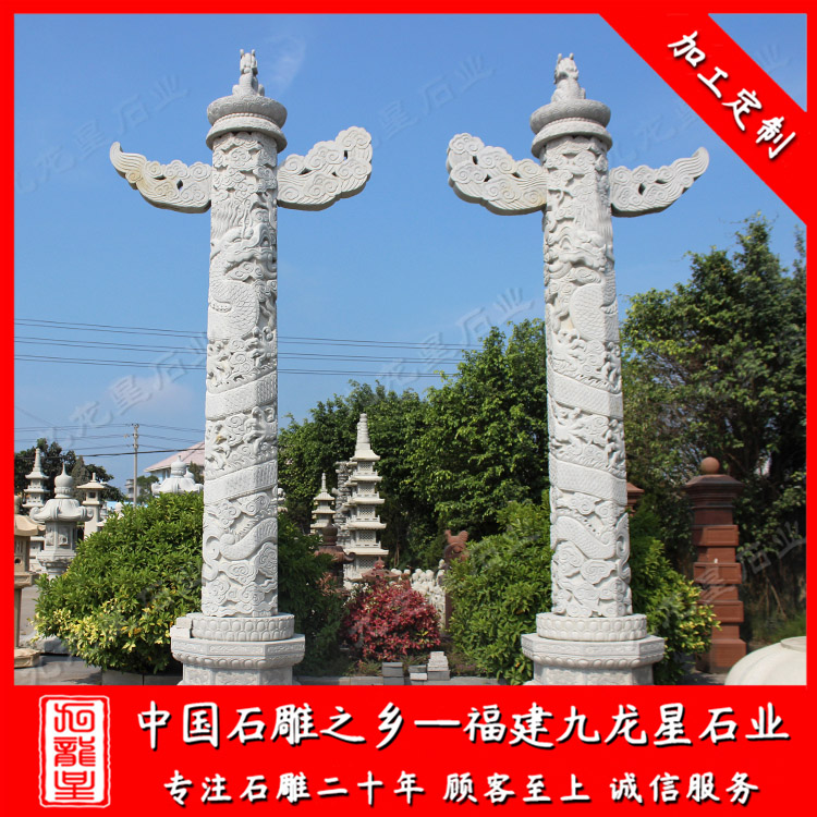 石雕龍柱可以十分方便地將之建立在城市、寺院宗祠、鄉村廣場的各個不同的方位,它可以輕松地應對外界的各種自然氣候以及環境的各種惡劣因素,都可以讓人們在這些方面,也得到方便而又耐用的使用壽命,裝置之后就十分省心。