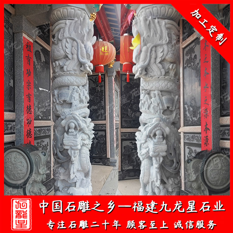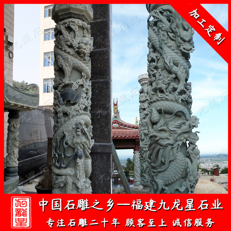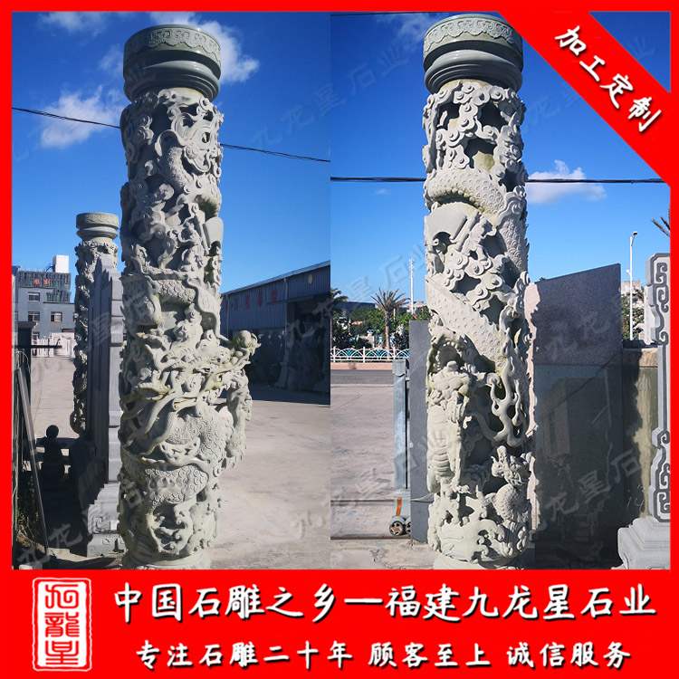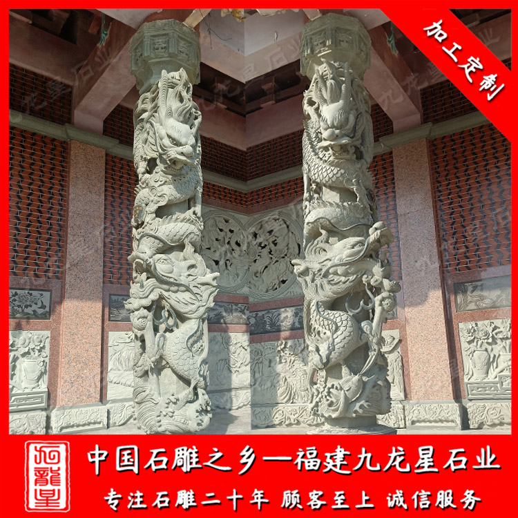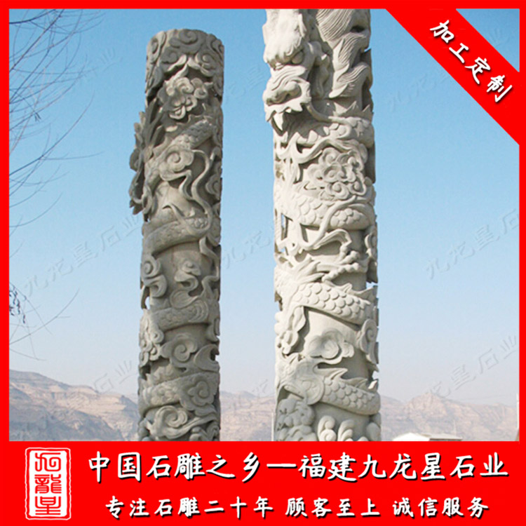石雕龍柱(寺廟石雕龍柱價格 單龍石雕龍柱雙龍石雕龍柱供應)——九龍星石業