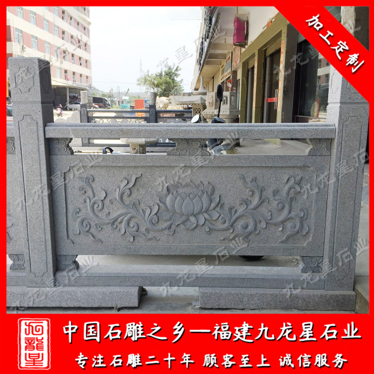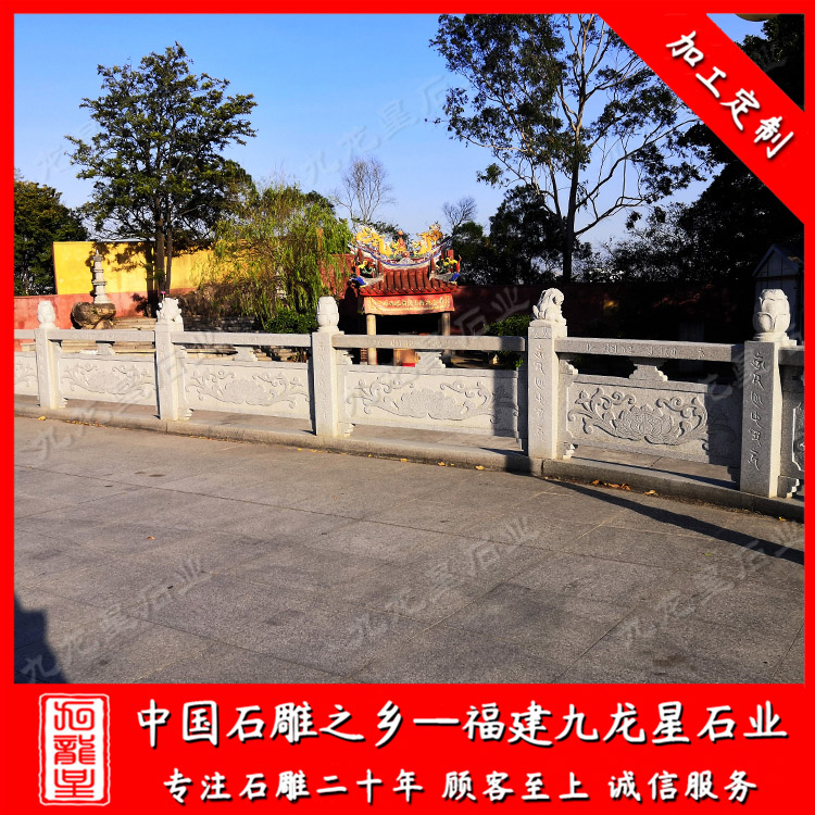 石欄桿批發(fā)廠家很多集中在福建惠安,福建九龍星石業(yè)發(fā)展有限公司位于--福建惠安,是惠安石欄桿批發(fā)廠家,九龍星人相信每塊石頭都獨(dú)馥藝術(shù)氣息,所以善用千年文化雕鑿工藝的研究、傳承、融合和發(fā)揚(yáng),使石雕作品承載藝術(shù)文化、體現(xiàn)更多社會價值。九龍星從事石欄桿設(shè)計、加工制作20多年,石雕欄桿圖片全,石欄桿款式多樣,石欄桿材質(zhì)可以為花崗巖、大理石、青石、漢白玉等等,望廣大新老客戶前來參觀考察和選購。