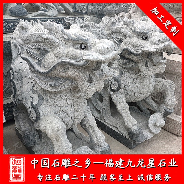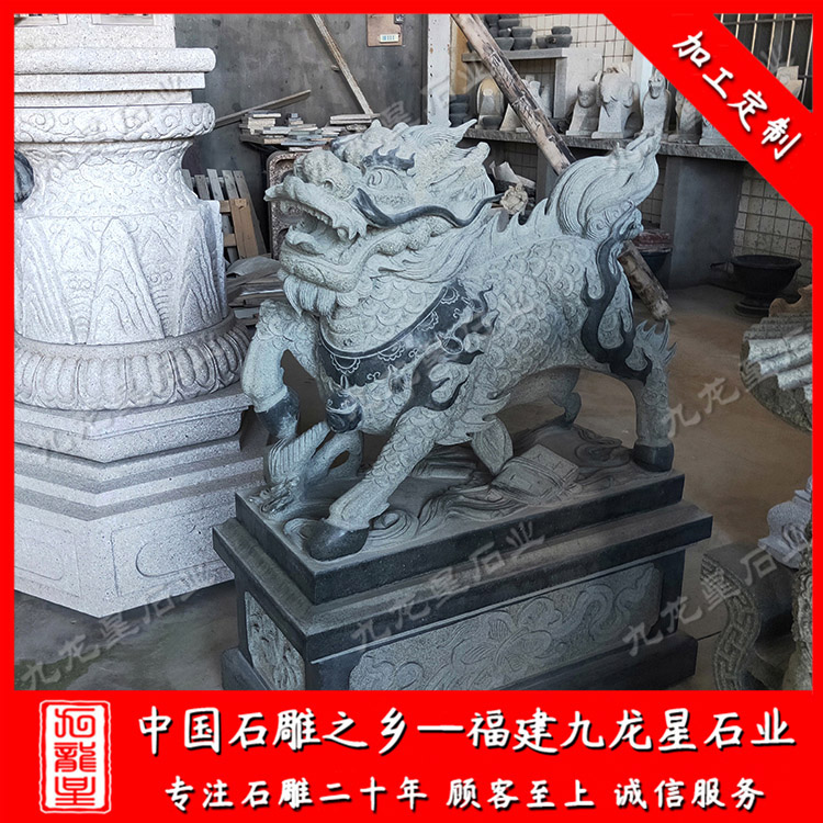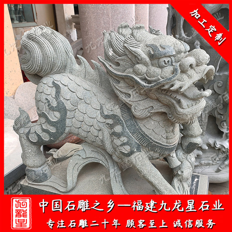 石雕麒麟神獸石雕廠很多集中在福建惠安,福建九龍星石業發展有限公司位于--福建惠安,是大麒麟石雕廠家,九龍星人相信每塊石頭都獨馥藝術氣息,所以善用千年文化雕鑿工藝的研究、傳承、融合和發揚,使石雕作品承載藝術文化、體現更多社會價值。九龍星從事石雕麒麟加工制作20多年,石雕麒麟神獸圖片全,有青石麒麟、漢白玉麒麟、花崗巖麒麟、大理石麒麟圖片等等。石雕麒麟神獸價格合理,望廣大新老客戶前來參觀考察和選購。