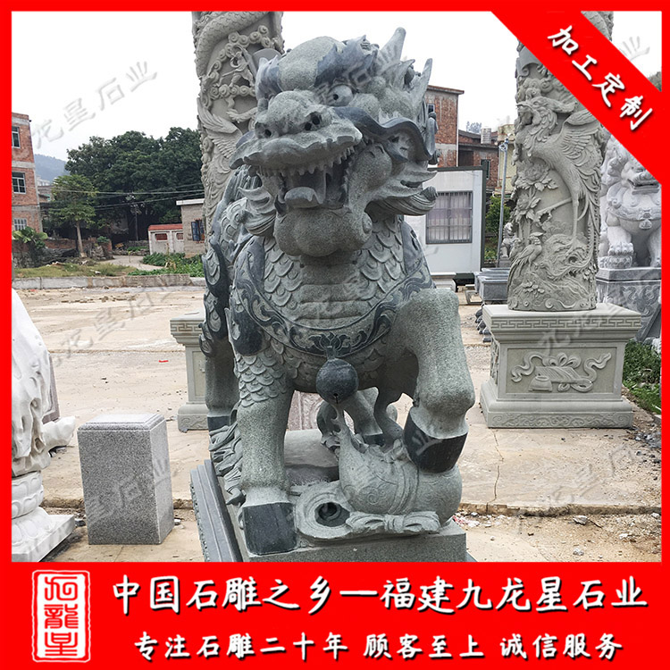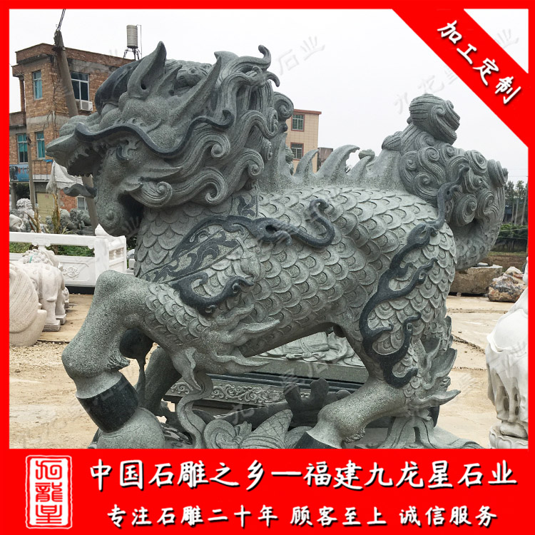石雕麒麟(一對石雕麒麟雕像圖片 2米石雕麒麟擺放門口)——九龍星石業
