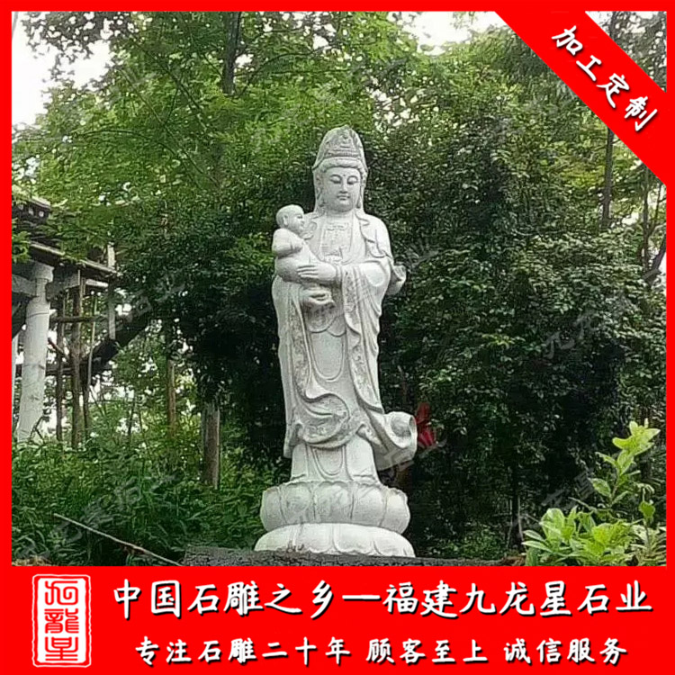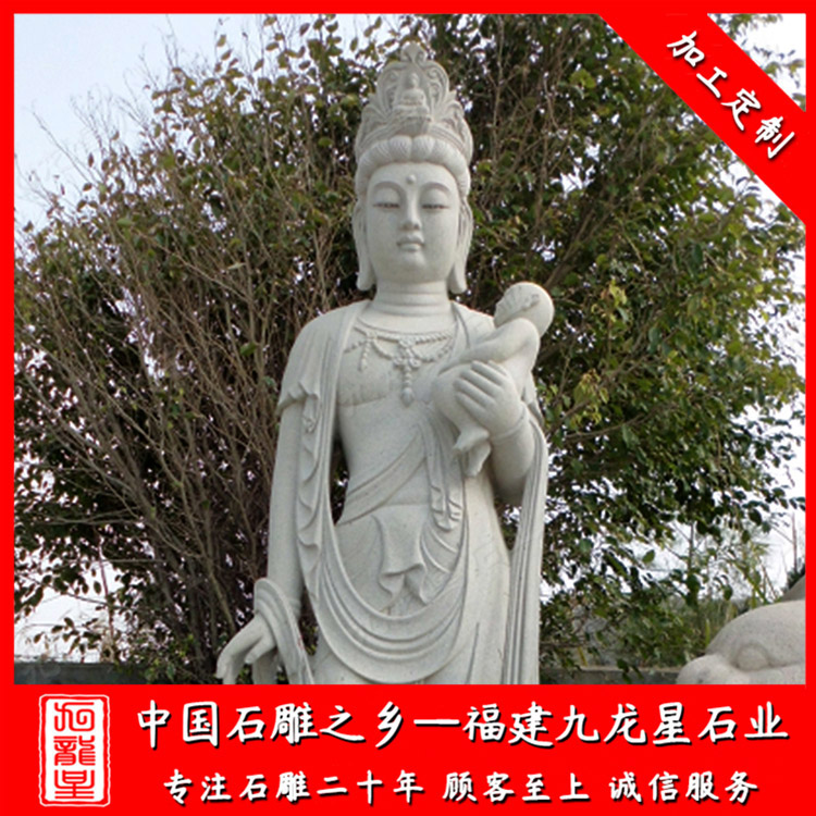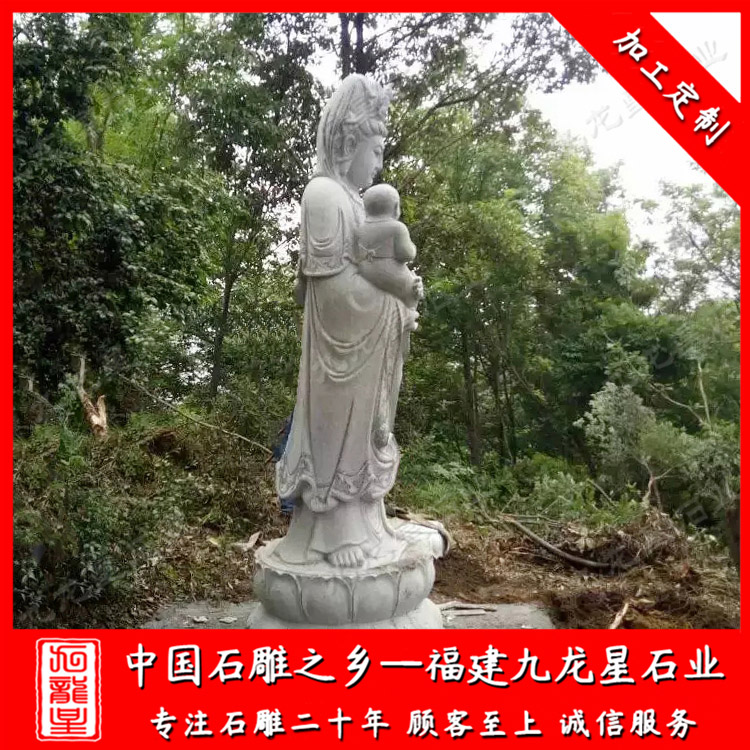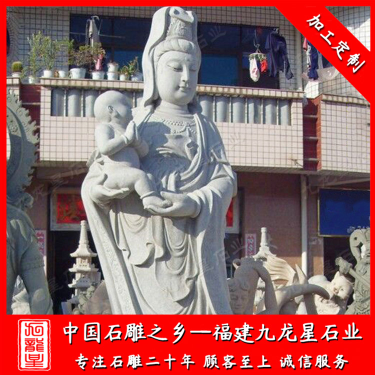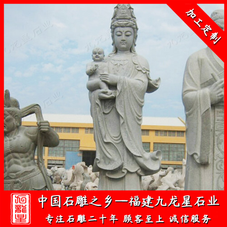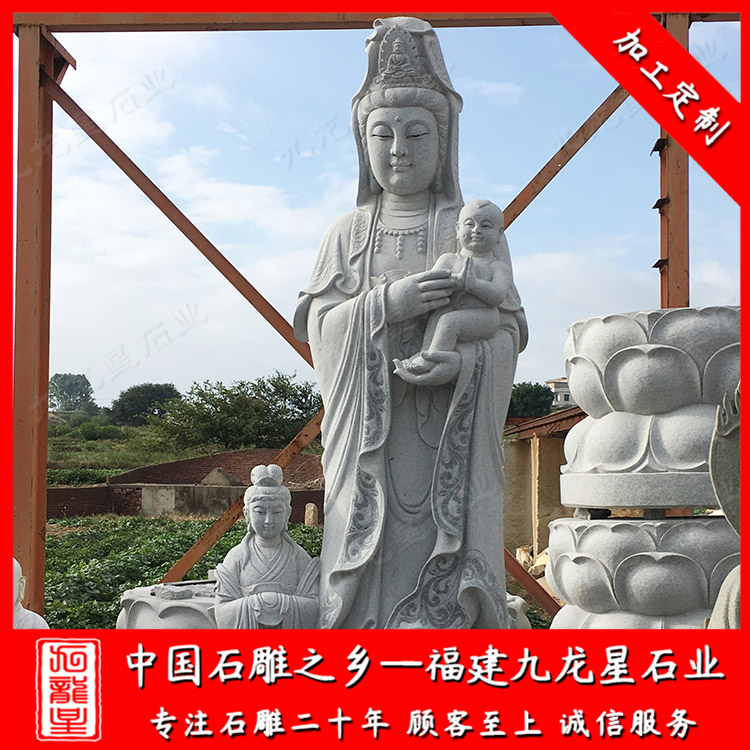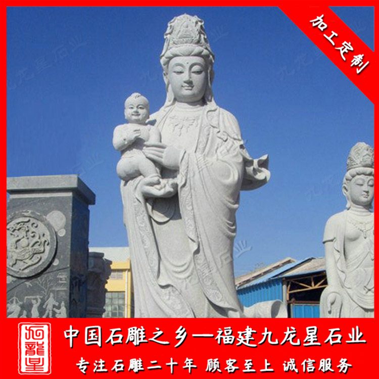 石雕送子觀音菩薩廠家很多集中在福建惠安,福建九龍星石業(yè)發(fā)展有限公司位于--福建惠安,是送子觀音菩薩石雕廠家,九龍星人相信每塊石頭都獨(dú)馥藝術(shù)氣息,所以善用千年文化雕鑿工藝的研究、傳承、融合和發(fā)揚(yáng),使石雕作品承載藝術(shù)文化、體現(xiàn)更多社會(huì)價(jià)值。九龍星從事石雕送子觀音加工制作20多年,石雕送子觀音圖片全,有2米送子觀音菩薩石雕擺件、也有9.9米、6米、3米等款式的送子觀音菩薩石雕擺件。石雕送子觀音材質(zhì)可以為花崗巖、青石、漢白玉等等,望廣大新老客戶前來參觀考察和選購。