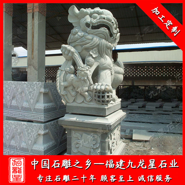 獅子石雕廠家很多集中在福建惠安,福建九龍星石業發展有限公司位于--福建惠安,是石雕獅子廠家,九龍星人相信每塊石頭都獨馥藝術氣息,所以善用千年文化雕鑿工藝的研究、傳承、融合和發揚,使石雕作品承載藝術文化、體現更多社會價值。九龍星從事石雕獅子加工制作20多年,石雕獅子圖片全,款式多樣,有祠堂石雕獅子、寺廟用石雕獅子、家用石雕獅子,石雕媽祖雕像材質可以為花崗巖、青石、漢白玉等等,望廣大新老客戶前來參觀考察和選購。