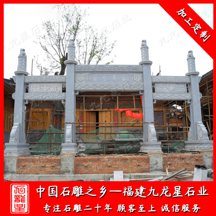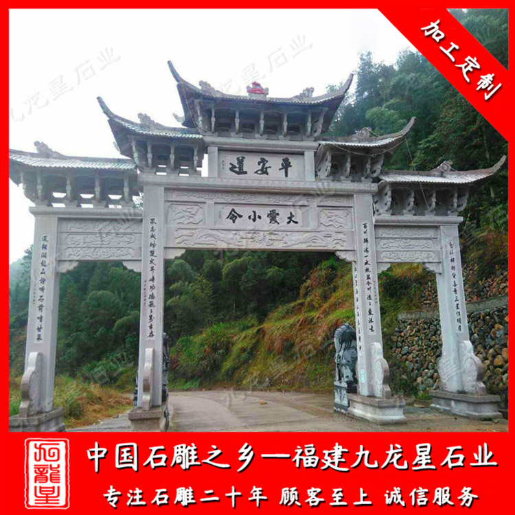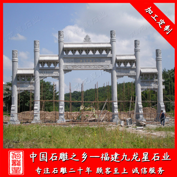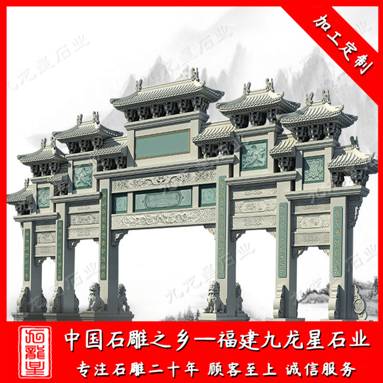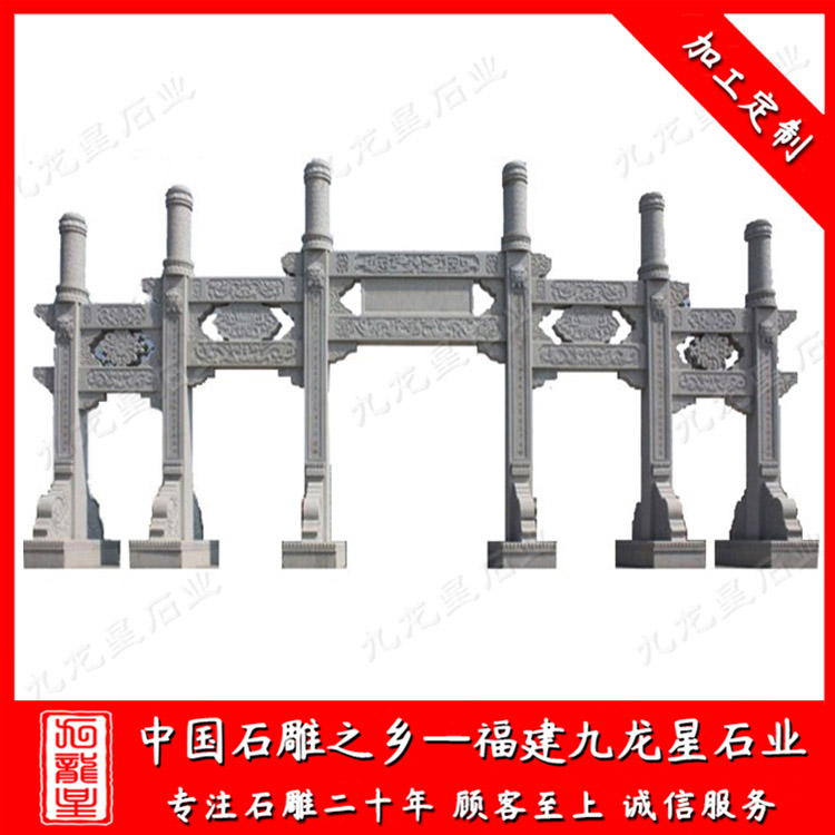 九龍星是石牌坊門樓廠家,從事石雕牌坊加工制作20多年,大號型石雕牌坊設計加工經驗多。石牌坊門樓、大號型石雕牌坊款式多樣,有景區牌坊石雕圖片 村莊石牌坊圖片、也有寺廟山門牌坊,可來電要圖欣賞。石牌坊門樓材質可以為花崗巖、青石、漢白玉等等,望廣大新老客戶前來參觀考察和選購。