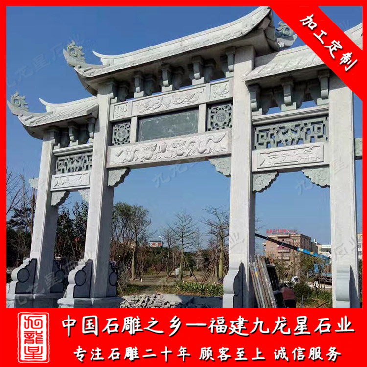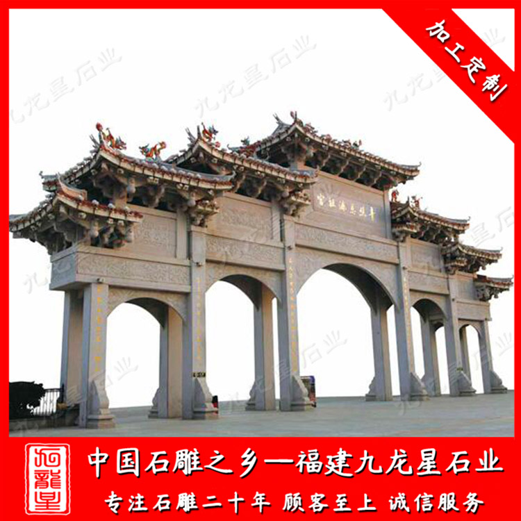 石雕牌坊(三門五門石牌坊牌樓 石雕景區牌坊 村莊石牌坊廠家)——九龍星石業