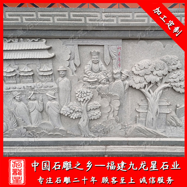 九龍星從事寺廟浮雕、祠堂浮雕加工制作20多年,寺廟浮雕、祠堂浮雕款式多樣,有寺廟浮雕人物浮雕、宗祠浮雕九龍壁、寺廟浮雕文化墻、寺廟浮雕飛天仙女、石材浮雕山水畫等等。寺廟浮雕、祠堂浮雕材質可以為花崗巖、青石、漢白玉等等,望廣大新老客戶前來參觀考察和選購。