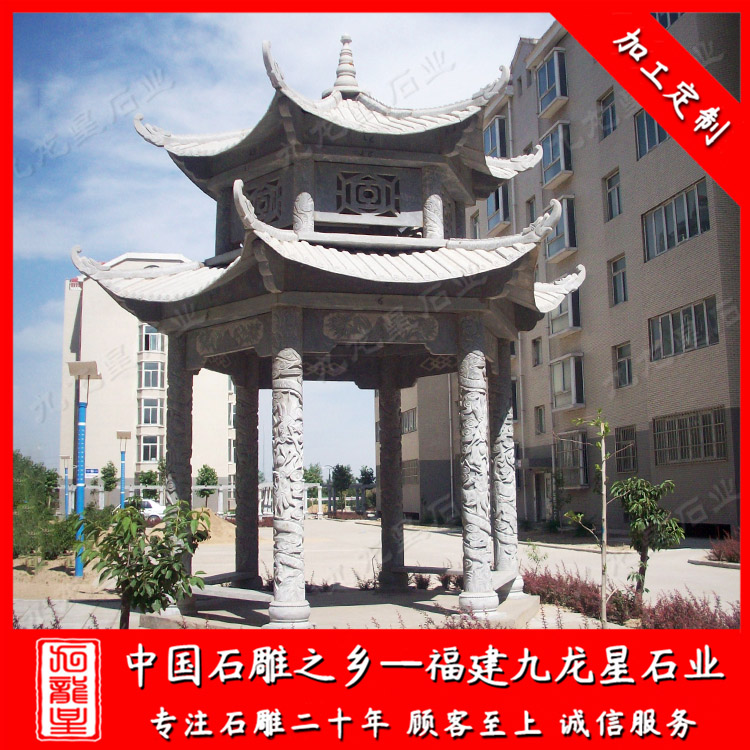 石雕涼亭(涼亭石雕廠家 雙層仿古石雕涼亭 石亭子款式圖片)——九龍星石業(yè)