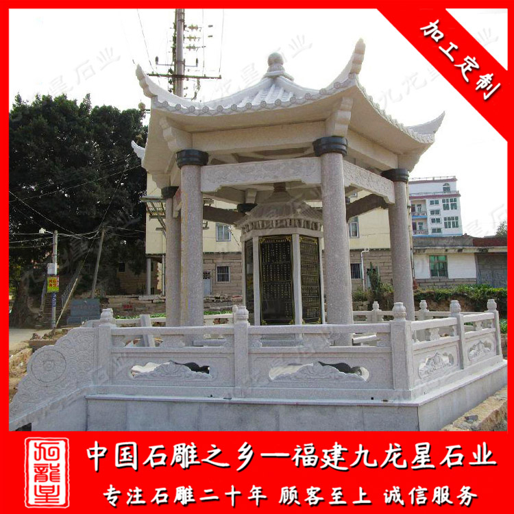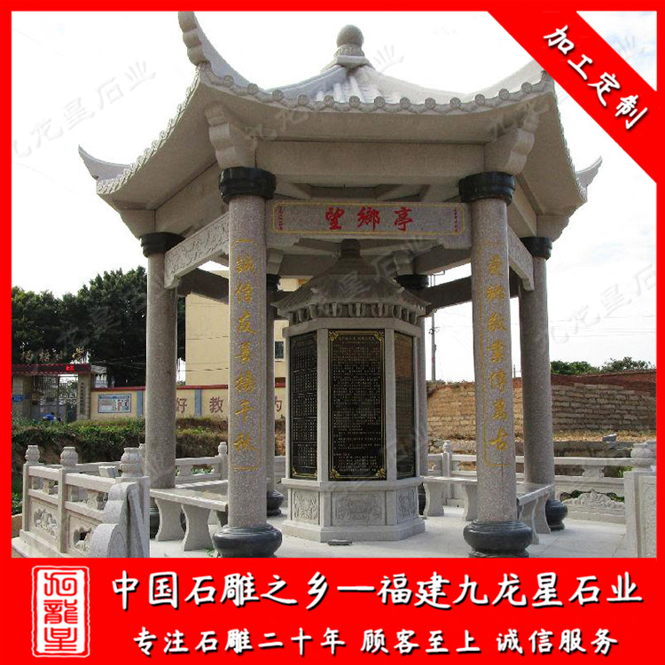 石亭子造型有很多。九龍星石業(yè)從事石雕行業(yè)二十多年,石雕涼亭加工制作經(jīng)驗(yàn)多。石雕涼亭款式多樣,雙層仿古石雕涼亭、單層石亭子、六角涼亭、八角涼亭等等,可來電要圖詢價(jià)。石雕涼亭材質(zhì)可以為花崗巖、青石、大理石等等,望廣大新老客戶前來參觀考察和選購。