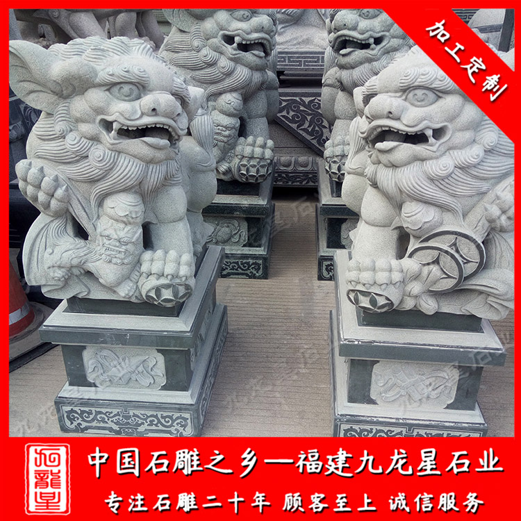 擺放石獅子寓意的寓意很多,多為吉祥之意。很多人喜歡在大門口擺放一對石獅子。九龍星石業是石刻石獅子廠家批發,石獅子雕塑價格合理,歡迎廣大客戶前來咨詢。