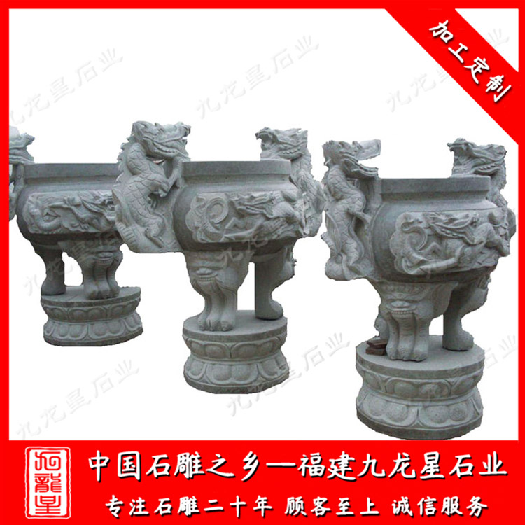 石雕香爐(寺廟香爐石雕廠家 長方形石制香爐 石雕圓形帶蓋香爐)——九龍星石業