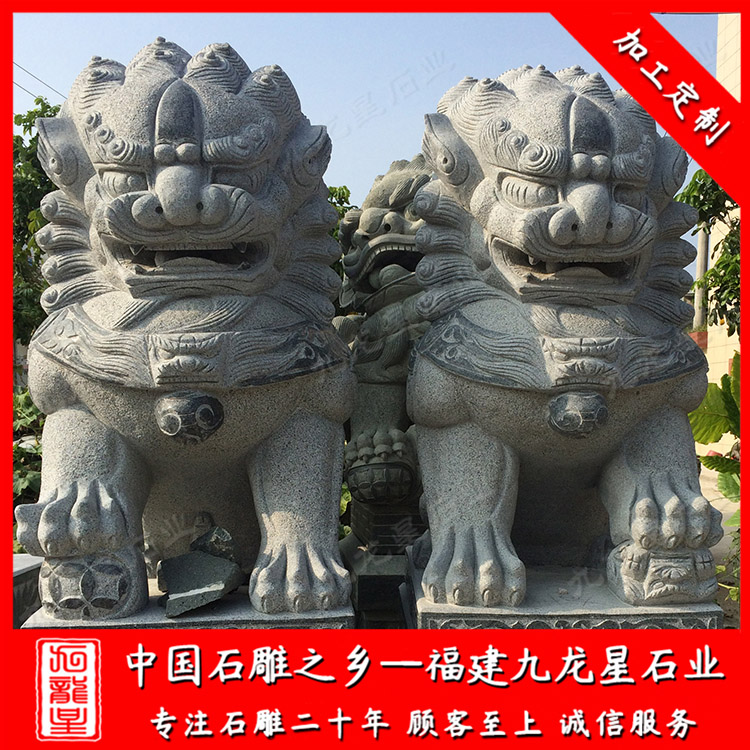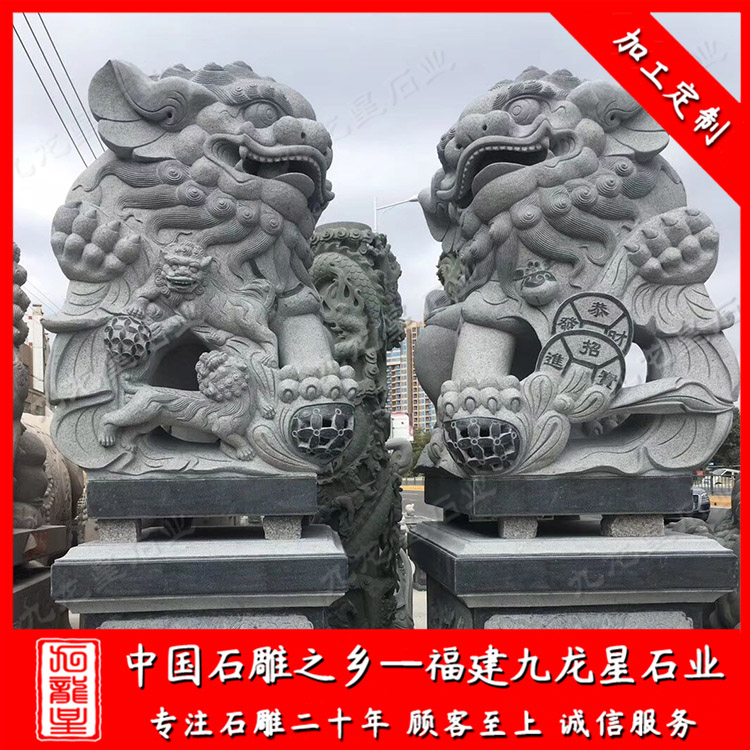 石雕獅子(銀行門口石獅子 一對石獅子雕塑 石獅子擺放講究)——九龍星石業