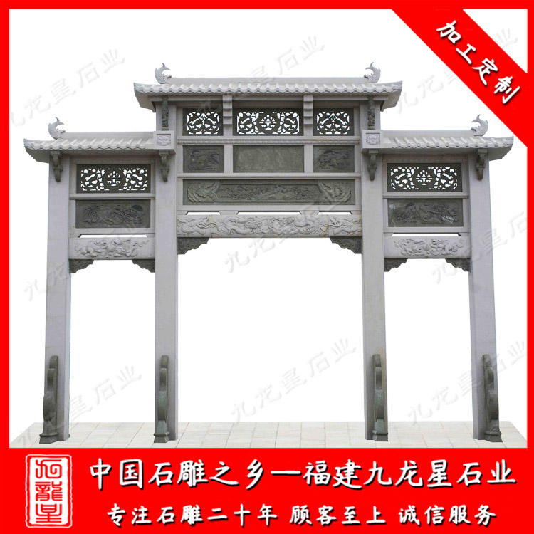 九龍星石業(yè)從事石雕行業(yè)二十多年,石牌坊價格合理,石牌坊圖片多樣,有景區(qū)石牌坊、寺廟山門石牌坊、村口石雕牌坊,歡迎咨詢我們,我們會發(fā)您一些適合您的石雕石牌坊圖片,并且為您做出報價。