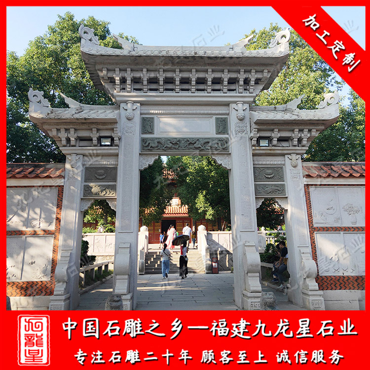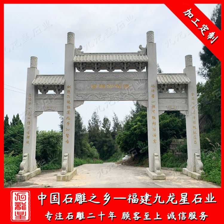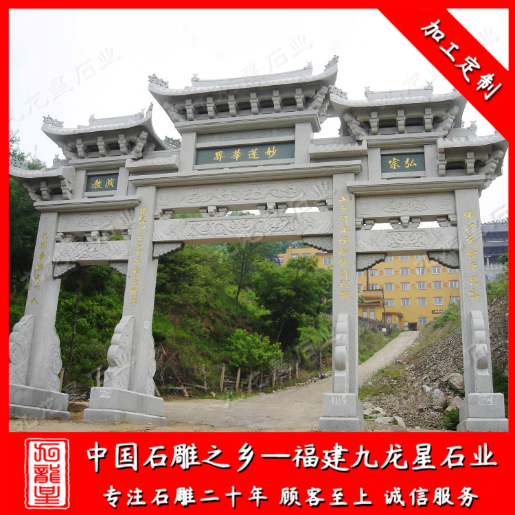 石雕牌坊(大型石雕牌坊廠家 寺院石雕牌坊 寺廟三門石牌坊雕刻)——九龍星石業
