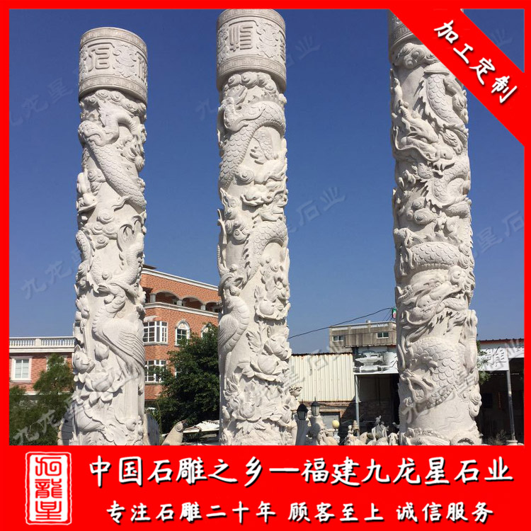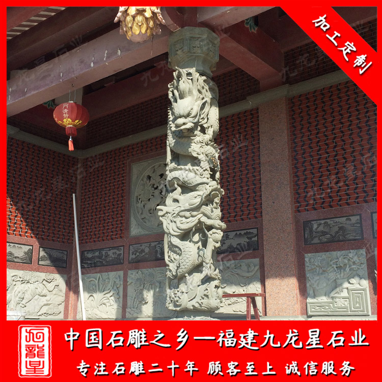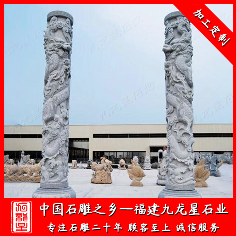 石雕龍柱(青石龍柱廠家 浮雕龍柱雕刻 石雕盤龍柱圖片)——九龍星石業