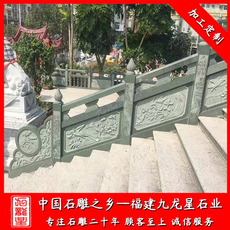 石欄桿護欄采用的是花崗巖、青石、漢白玉等石料雕刻制作而成,使用壽命長,可塑性非常強,可以制作成方形、圓形、橢圓形等各種樣式,并可在上面雕刻各式圖案。石雕欄桿是不可或缺的。石雕欄桿起到防護安全,在建筑物氣勢方面起著重要的作用。石欄桿應用廣泛,適用于道路、橋梁、河道、堤壩,寺廟等。石雕欄桿主要以花崗巖石材和青石石材較常見。