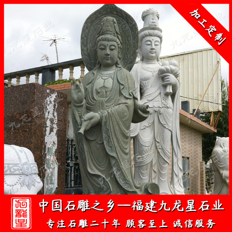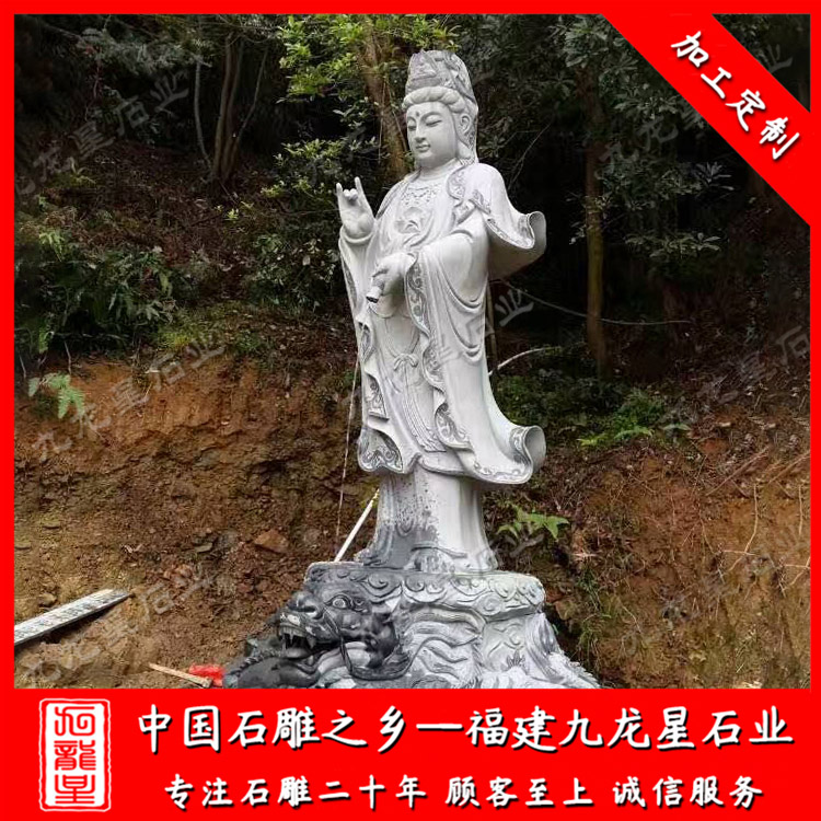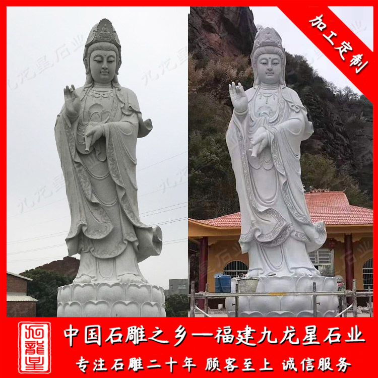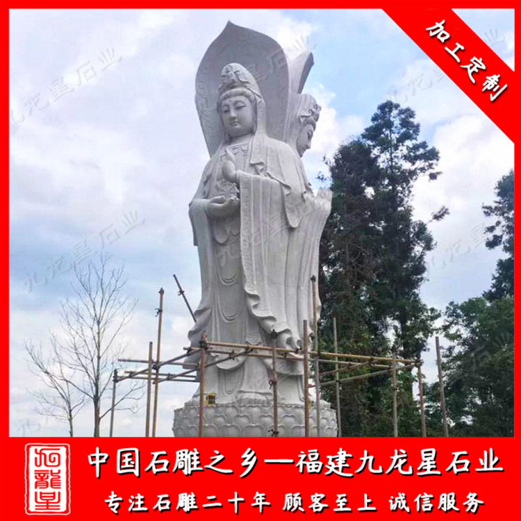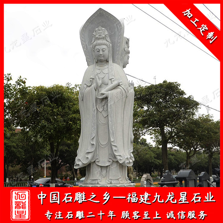 石雕觀音(大型石雕三面觀音廠家 戶外石雕滴水觀音圖片)——九龍星石業