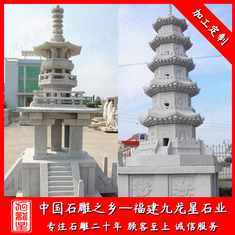 九龍星石業常年批發石塔,六角石雕佛塔、佛教石塔雕塑、古建筑石塔等等。