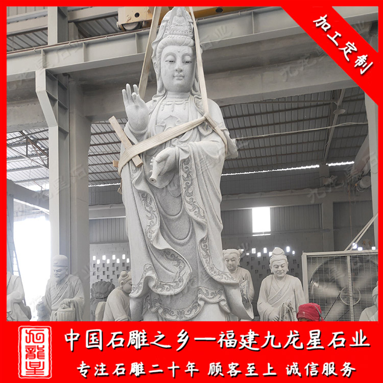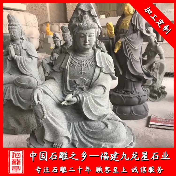 石雕觀音(寺廟觀音石雕像6米 家用宗祠石雕觀音佛像尺寸)——九龍星石業(yè)