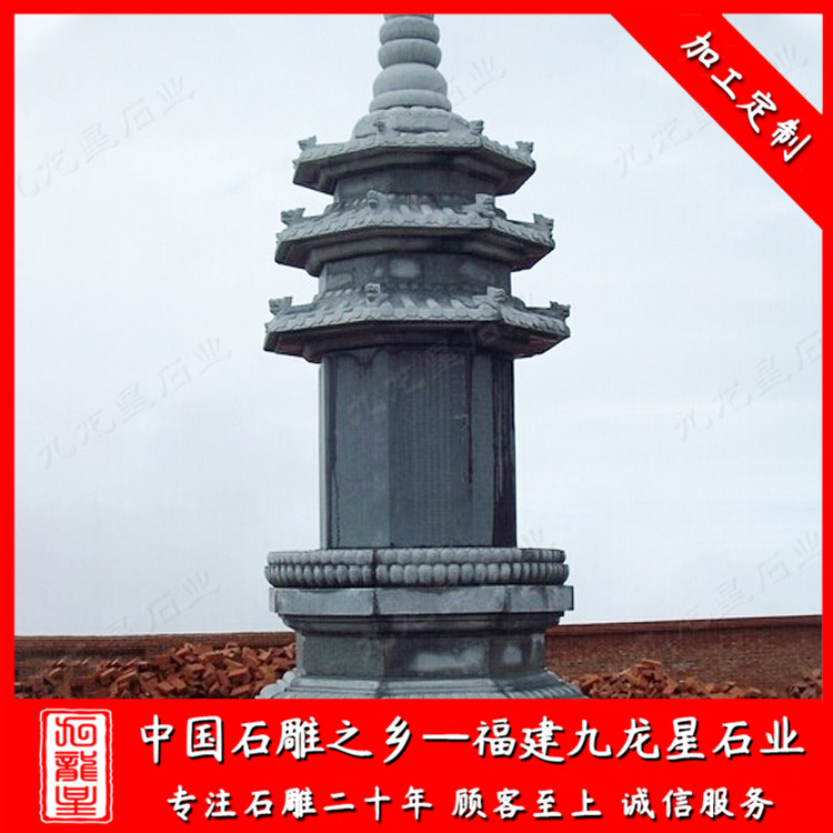 石雕石塔(石雕經幢廠家 寺廟石雕經幢佛塔 六柱形石塔)——九龍星石業