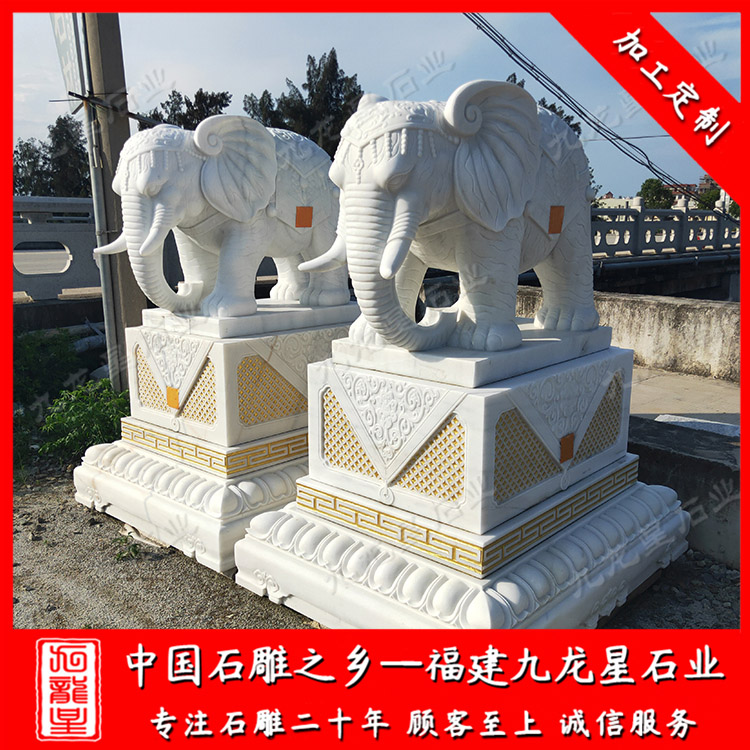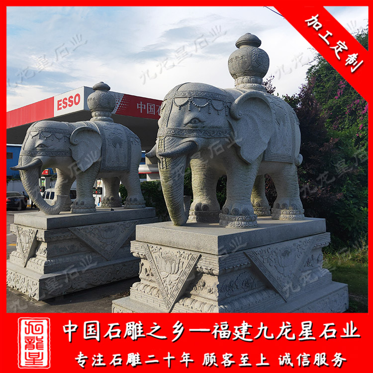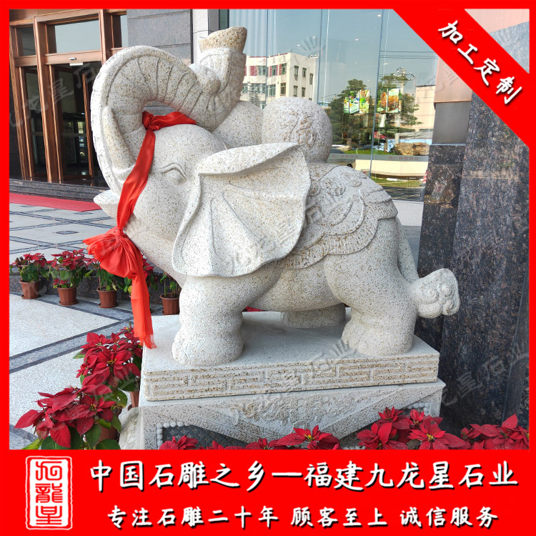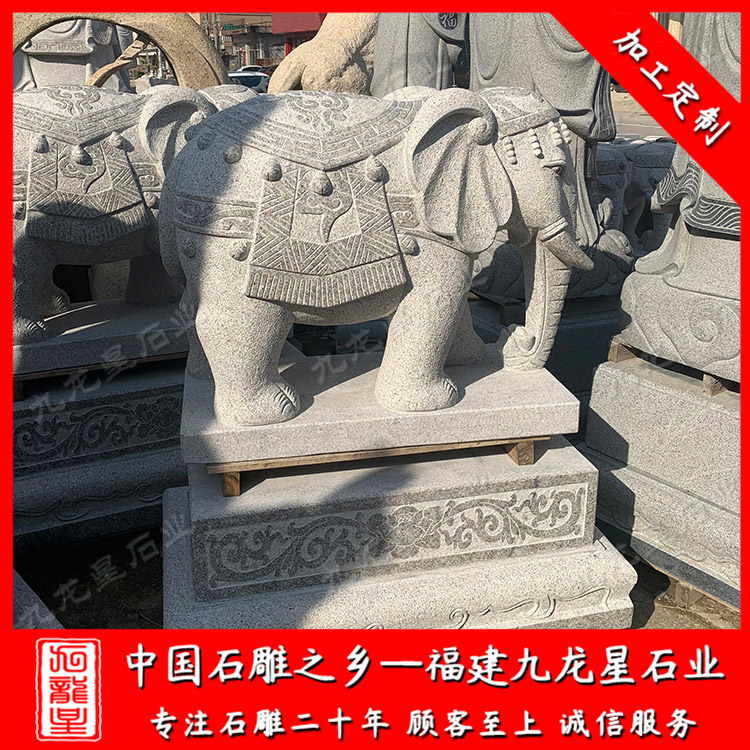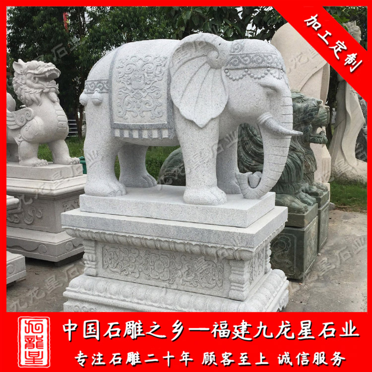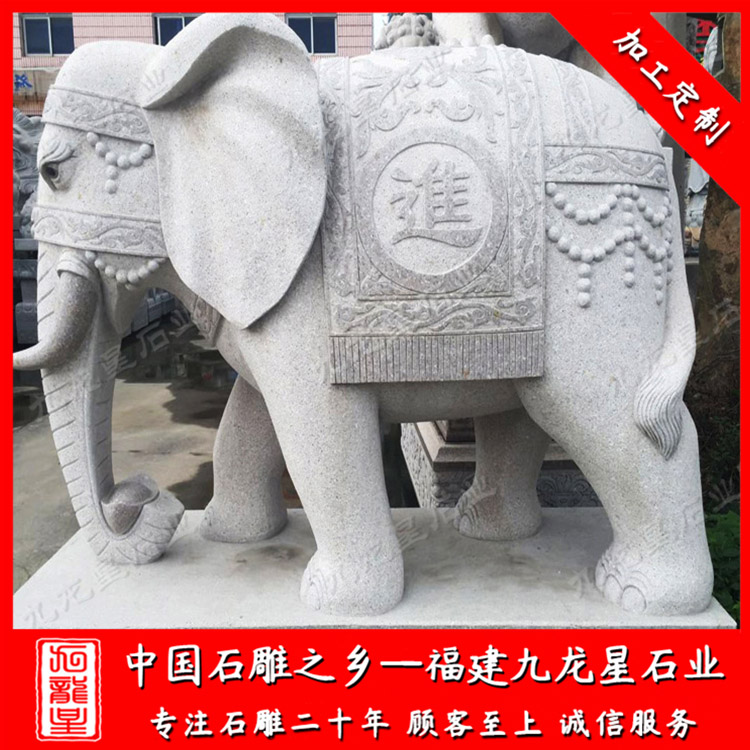 石雕大象有很好的鎮宅、招財、吉祥的寓意。雕刻石雕大象可用的石材有福建白麻石、青石、黃銹石、漢白玉、花崗巖等。