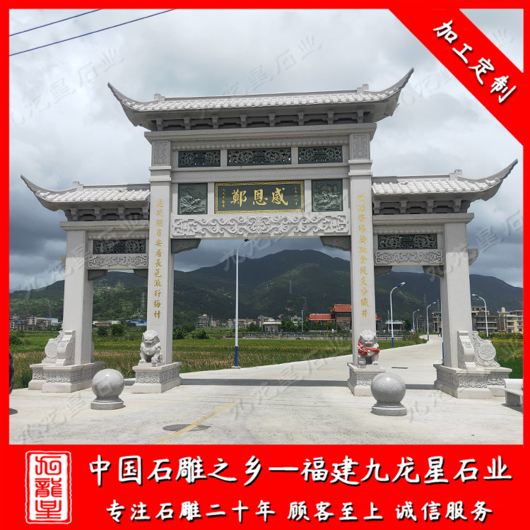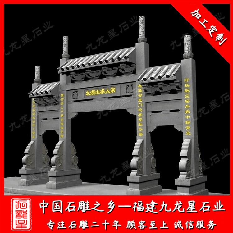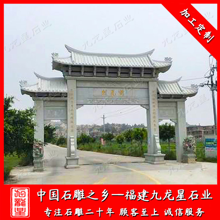 石雕牌坊(村口石牌坊報(bào)價(jià) 農(nóng)村大門三門石材牌坊廠家)——九龍星石業(yè)