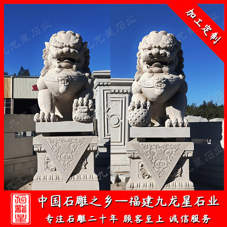 石雕獅子在我們心目中的心目中,是屬于可以給人帶來瑞祥的動物,人們也將它稱之為“瑞獸”。獅子是百獸之wang,有鎮宅化煞的吉祥作用。