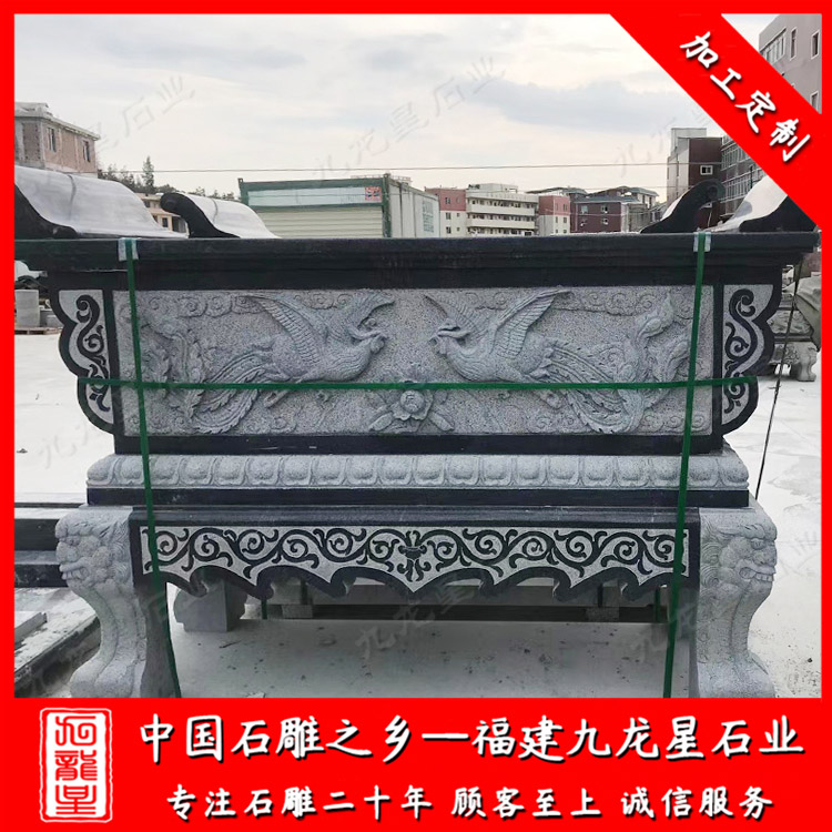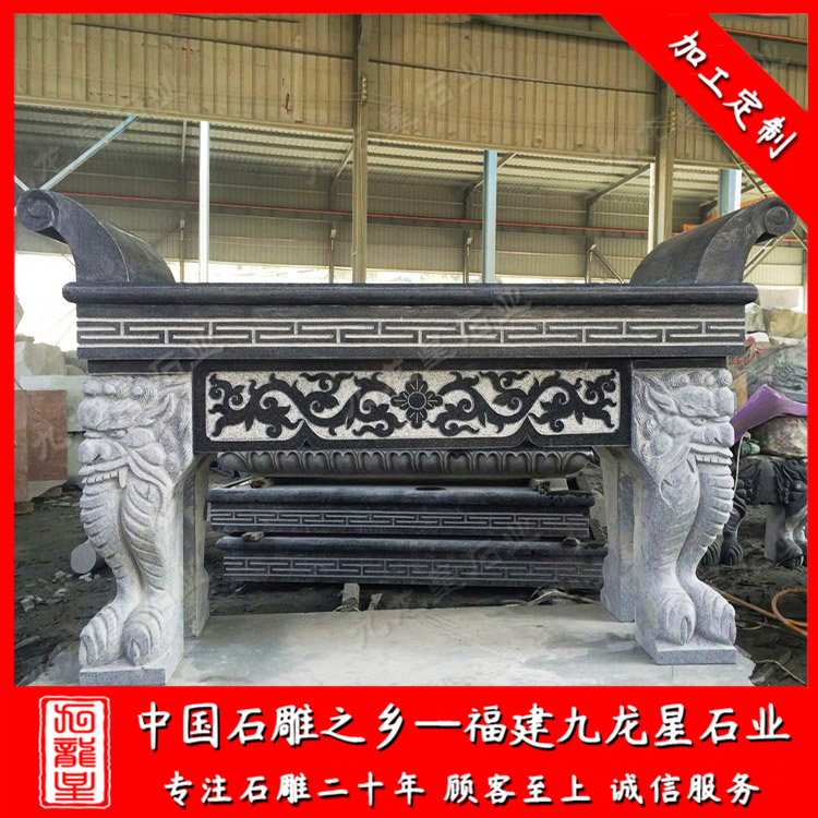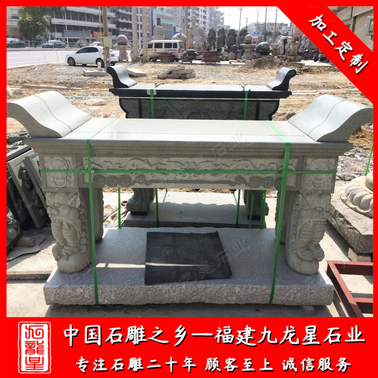 九龍星石業位于福建惠安,石雕供桌廠家,常年加工批發石雕供桌、石材供桌,可擺放于寺廟寺院、宗祠祠堂等地方。石雕供桌價格合理,石雕供桌加工期快,歡迎廣大客戶前來咨詢。