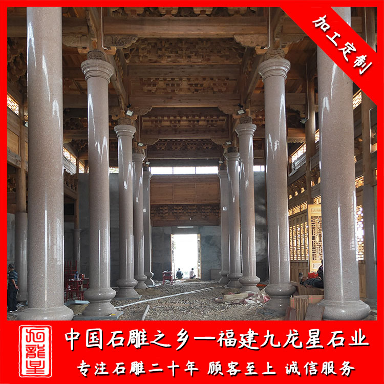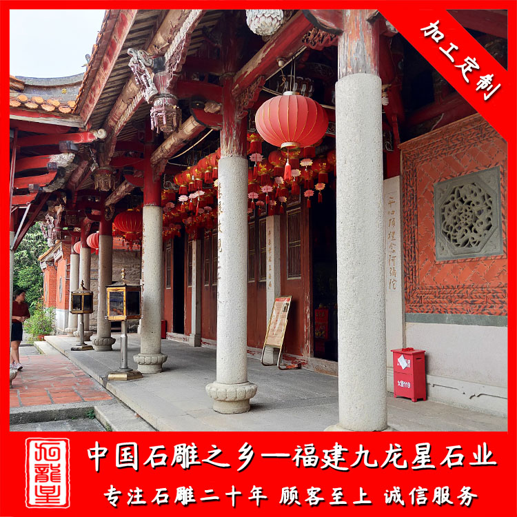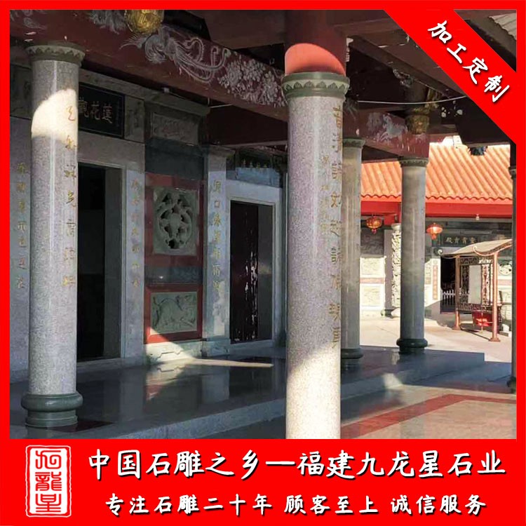 九龍星石業是石材圓柱廠家,常年批發祖厝石材圓柱、寺廟走廊石雕圓柱、寺廟大殿石材圓柱、宗祠石雕圓柱、景區石材圓柱子等等。工期快,價格合理,歡迎咨詢我們。