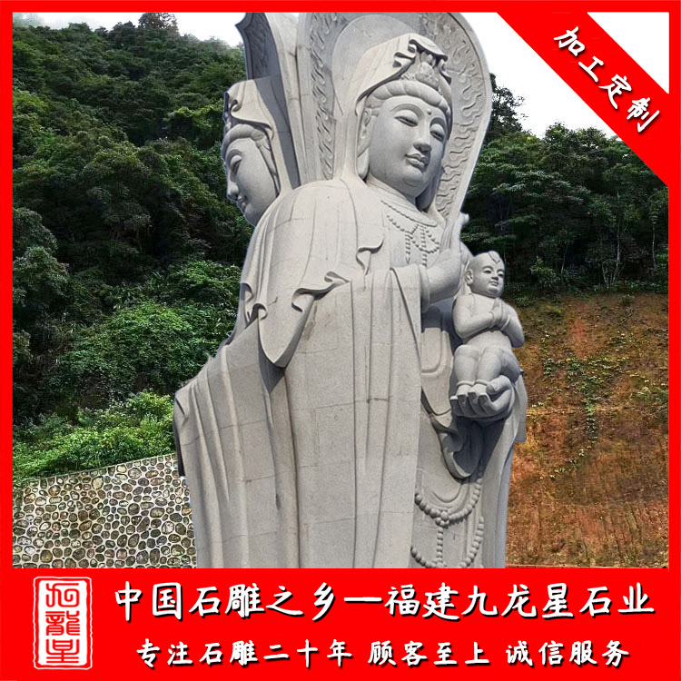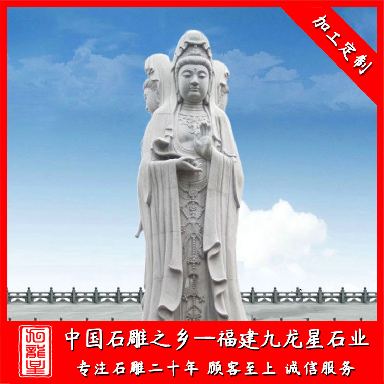 石雕觀音(大理石三面觀音效果圖 戶外大型石雕三面觀音圖片)——九龍星石業(yè)