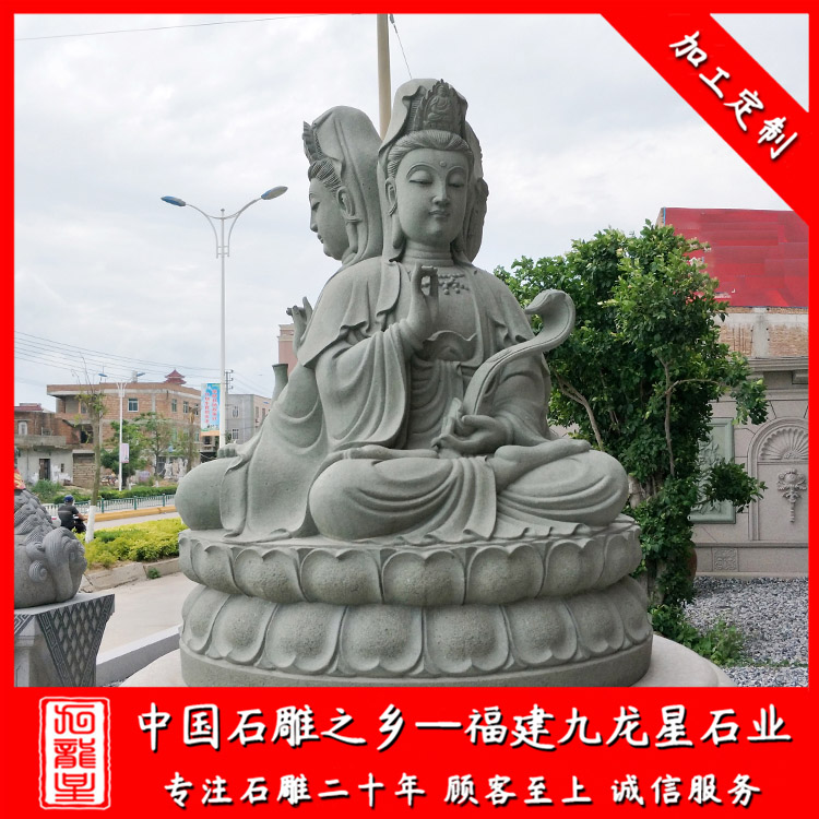 石雕觀音像在雕刻中,最常做的是滴水觀音,還有三面觀音,石雕三面觀音,在字面意思就是一個觀音像有三個面,正面觀音手持經(jīng)篋,右面觀音手持蓮花,左面觀音手持念珠,依次象征智慧,平安,仁慈。