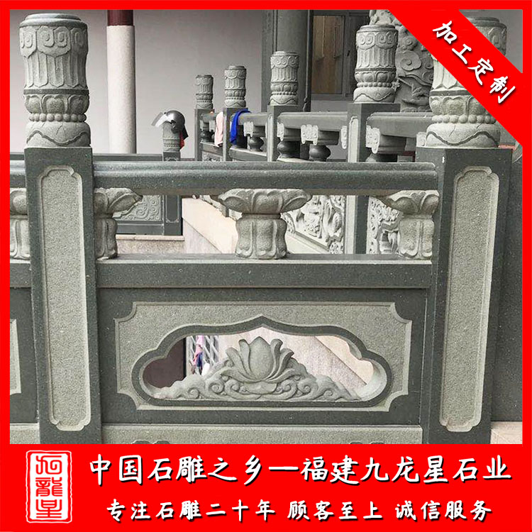 九龍星石業是石雕欄桿廠家,常年雕刻寺廟石雕欄桿、河道石欄桿、景區石雕欄桿、橋梁石雕欄桿等等,款式多樣,工期快,價格合理,歡迎咨詢我們。