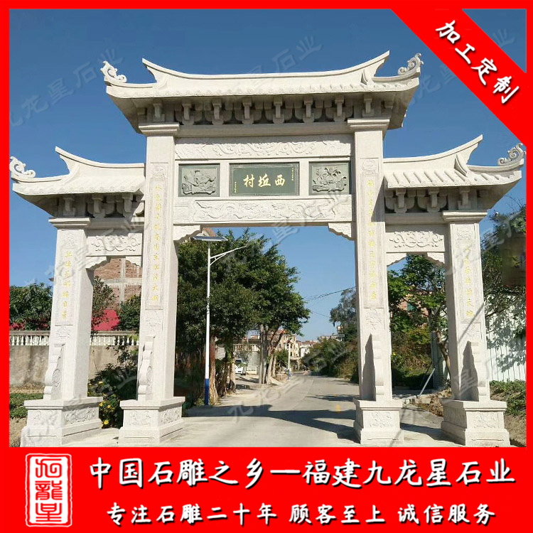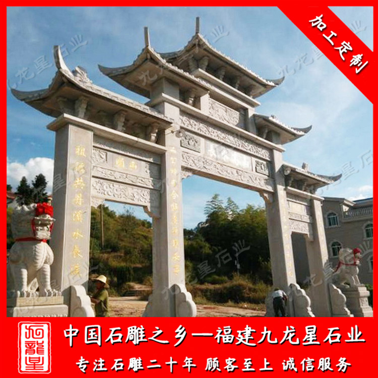 石雕牌坊(新農村石牌坊 石刻三門村頭石牌坊廠家)——九龍星石業(yè)